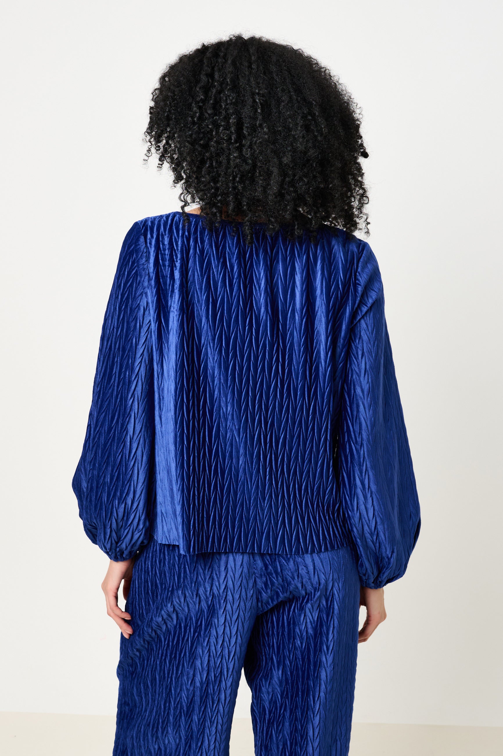 Aba Velvet Pleat Long Sleeve Top - Cobalt