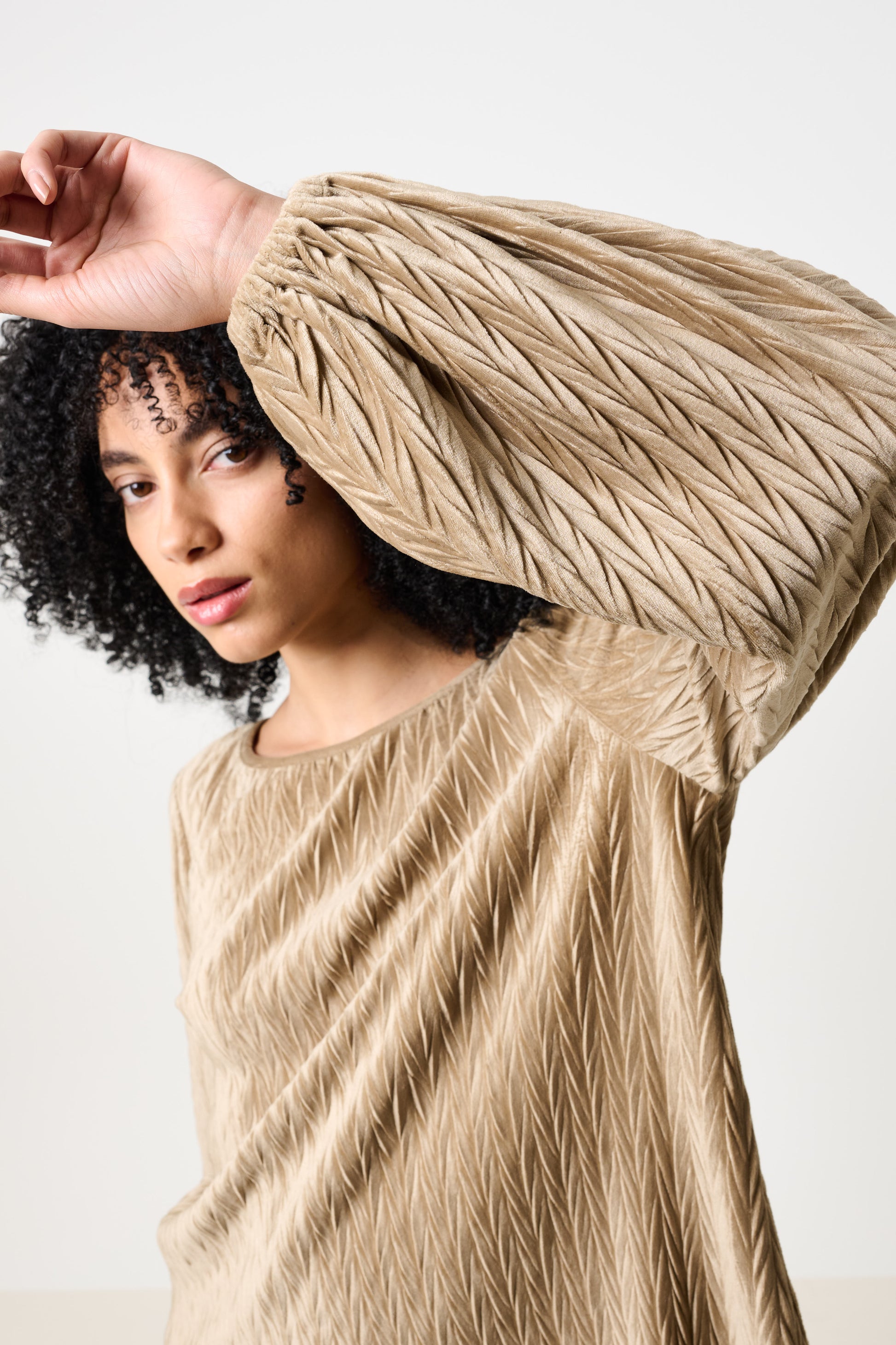 Aba Velvet Pleat Long Sleeve Top - Pale Taupe
