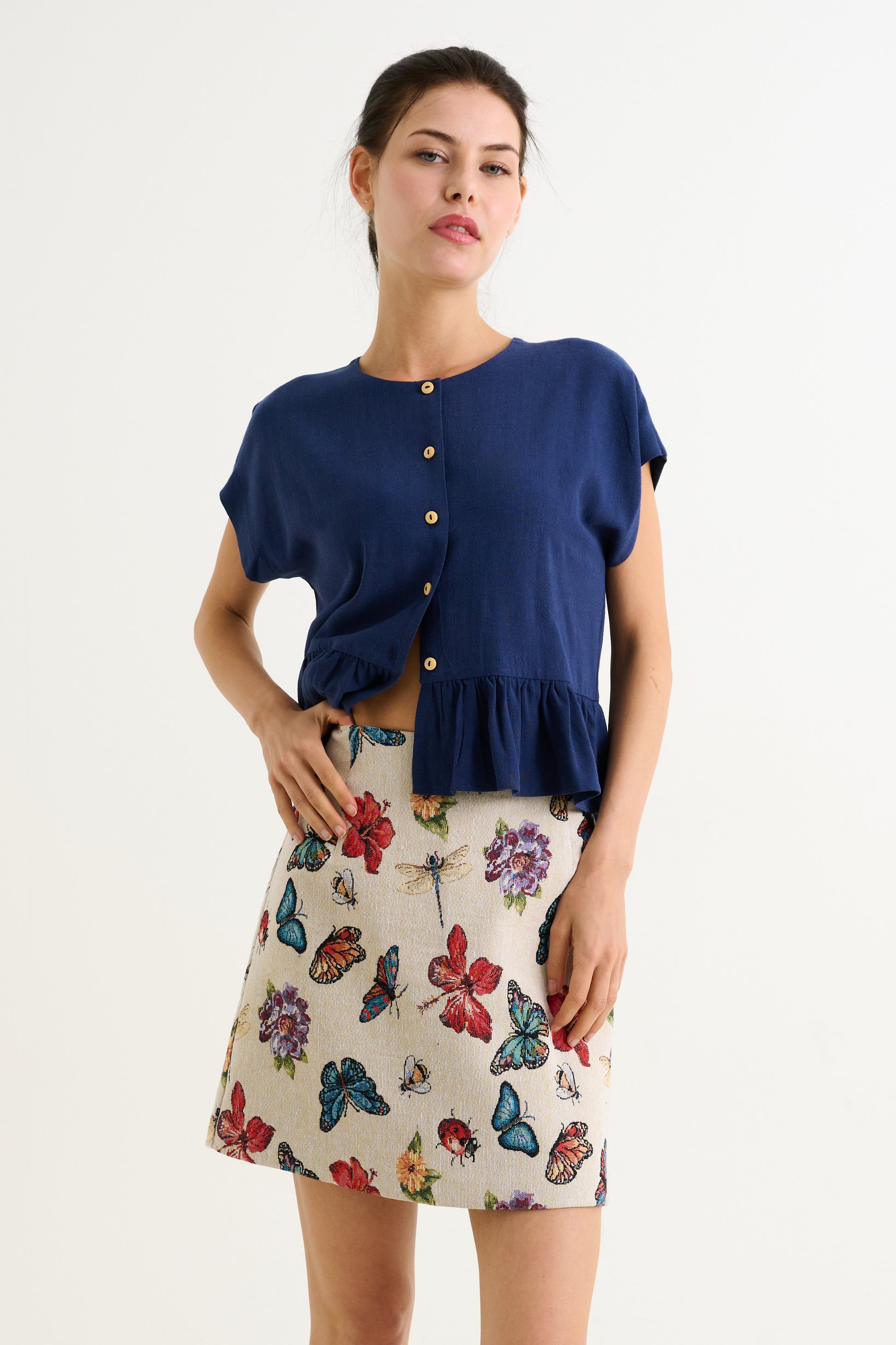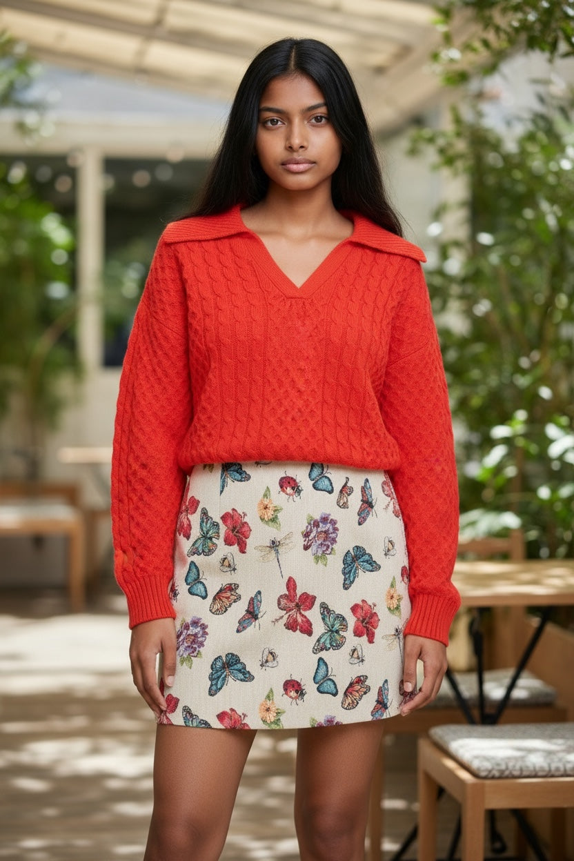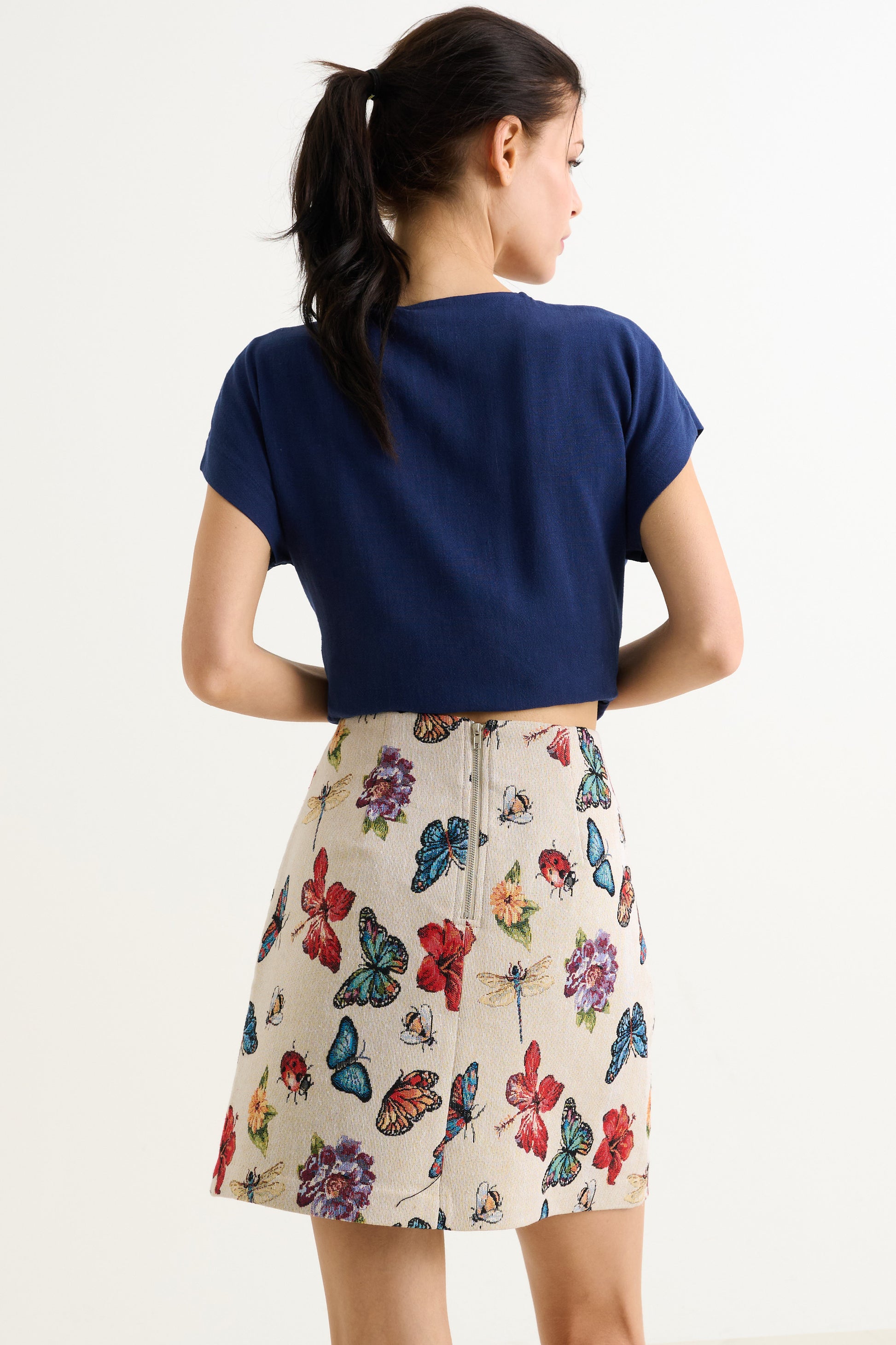 Your favourite A-line mini returns with a burst of colour and personality. Crafted in a brand new jacquard fabric showcasing a cheerful garden of butterflies and blooms, transforming the classic silhouette you adore into something fresh and bold. The multicolured nature of the design means it can easily co-ordinate with almost everything already in your wardrobe. Pure joy in skirt form.