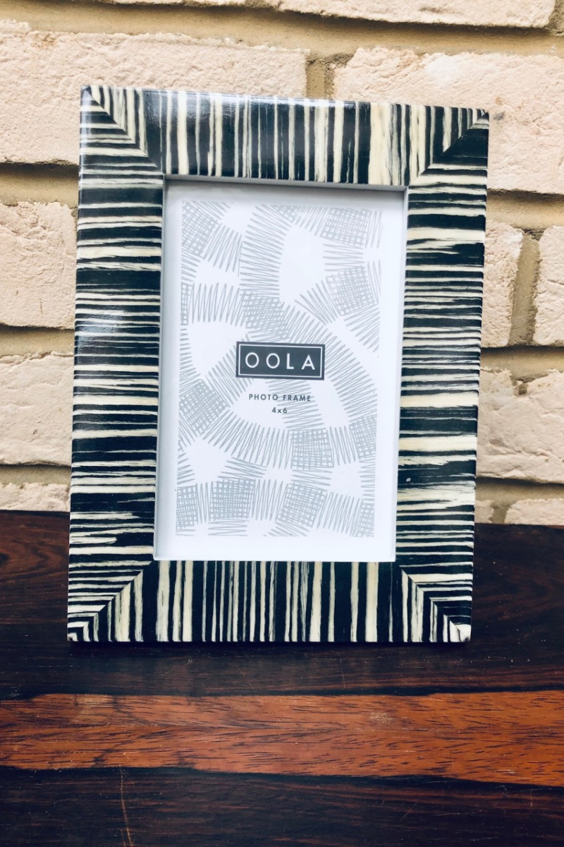 Black And Ecru Striped Photo Frame