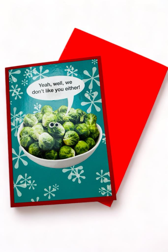 Brussels Sprouts you love or hate them, they are forever associated with the UK Christmas! Designed and made from FSC sustainable card in the UK, the card is blank inside with a bright neon orange coloured envelope which will certainly get noticed, included. Send your well wishes with this fun Christmas card!