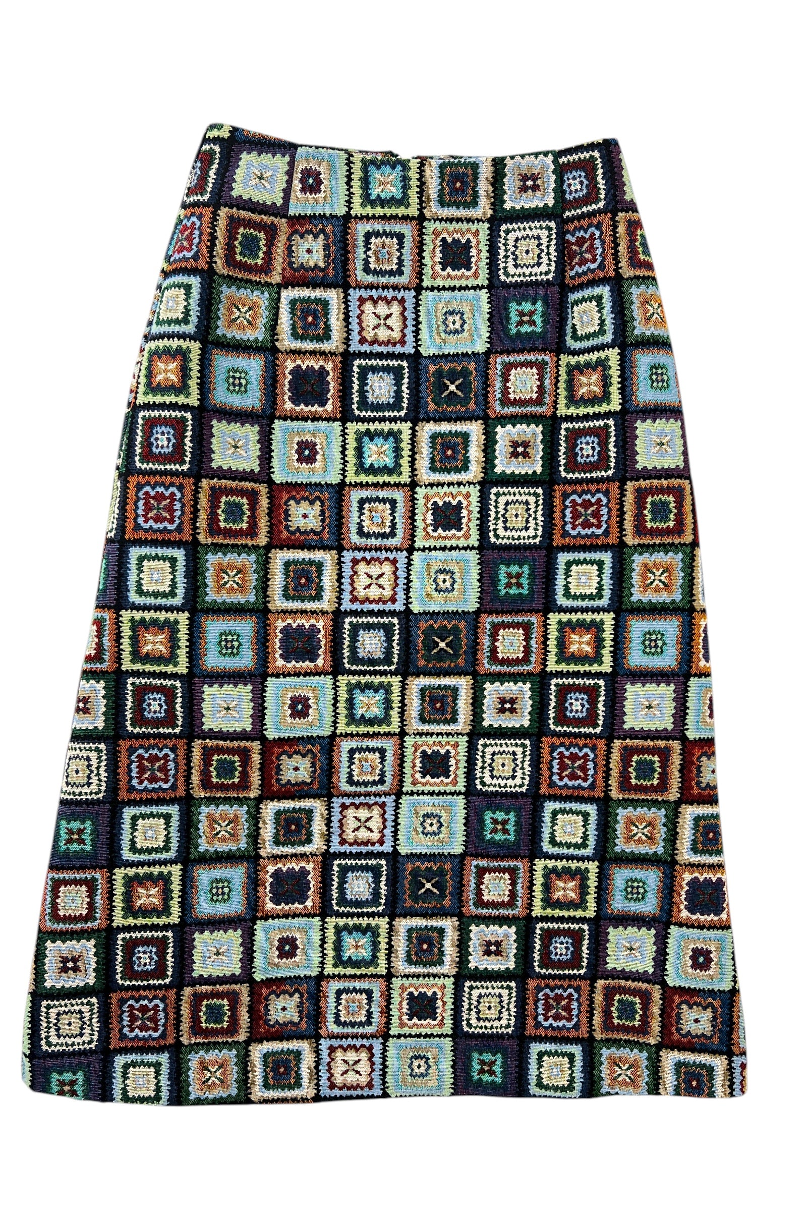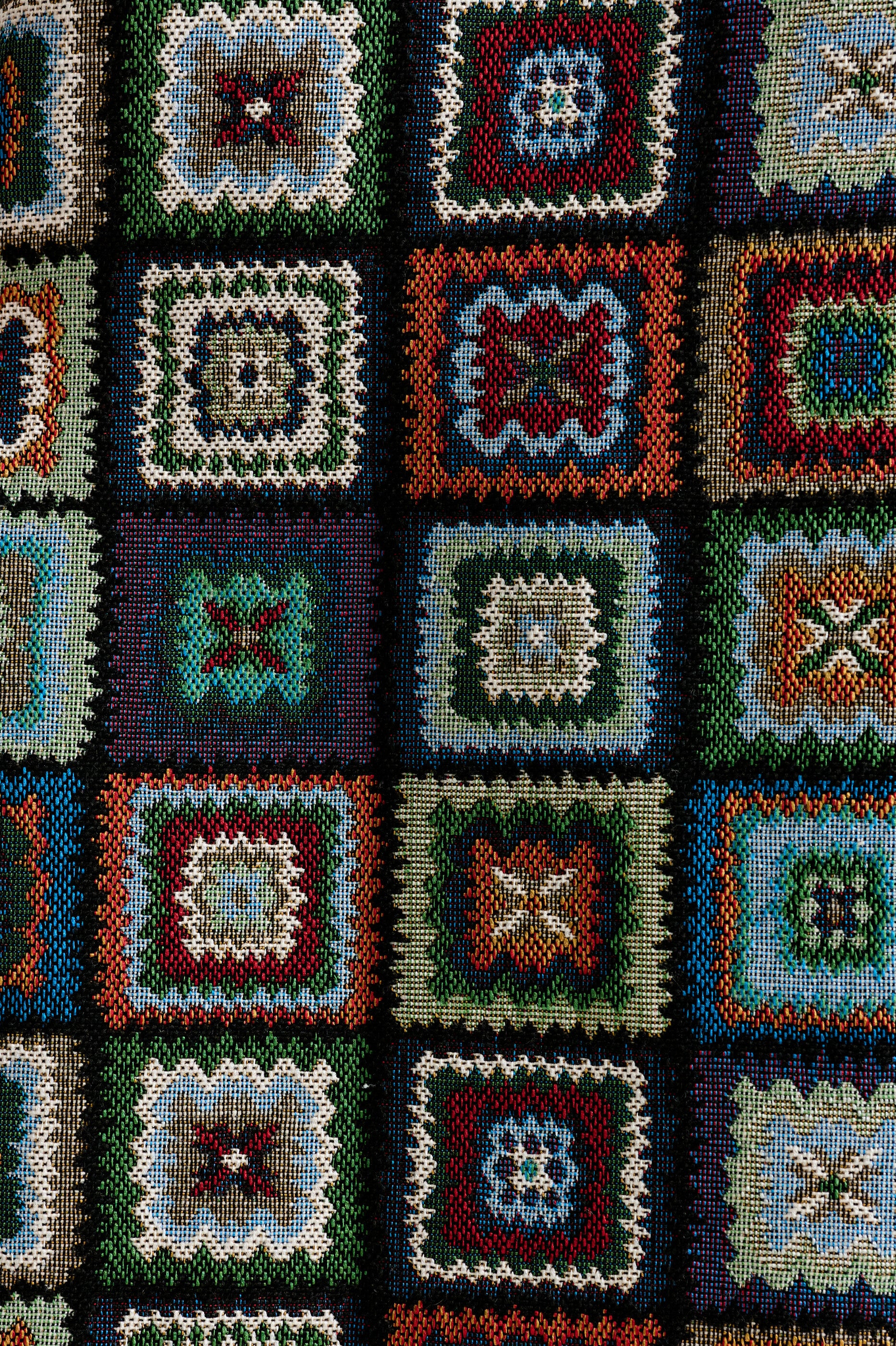 Meet Buffy, the A-Line midi skirt that steals the spotlight with its heavy, 70's patchwork jacquard weave. This unique skirt is sure to spark conversations wherever you go. Crafted in limited runs, this skirt guarantees you’ll stand out with a truly one-of-a-kind piece. Perfect for adding a playful twist to your wardrobe!