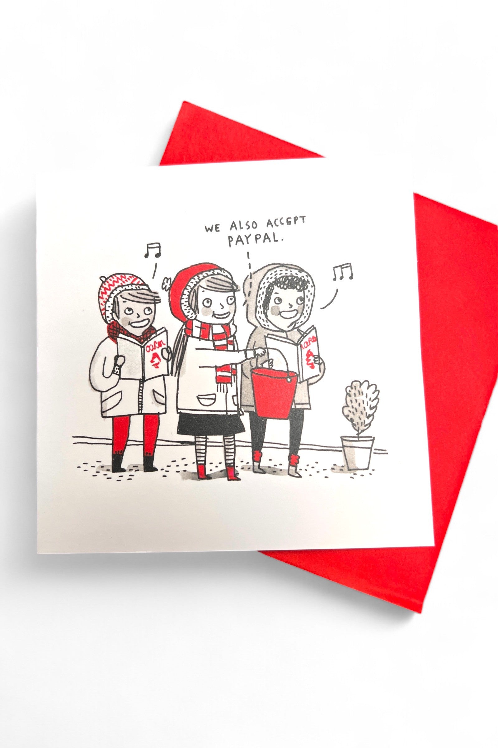 Yes how times have changed a few pence won't do anymore. This Christmas card is designed and made in the UK. The card's blank interior allows you to write your own message. Includes a bright red envelope to make it extra eye-catching.