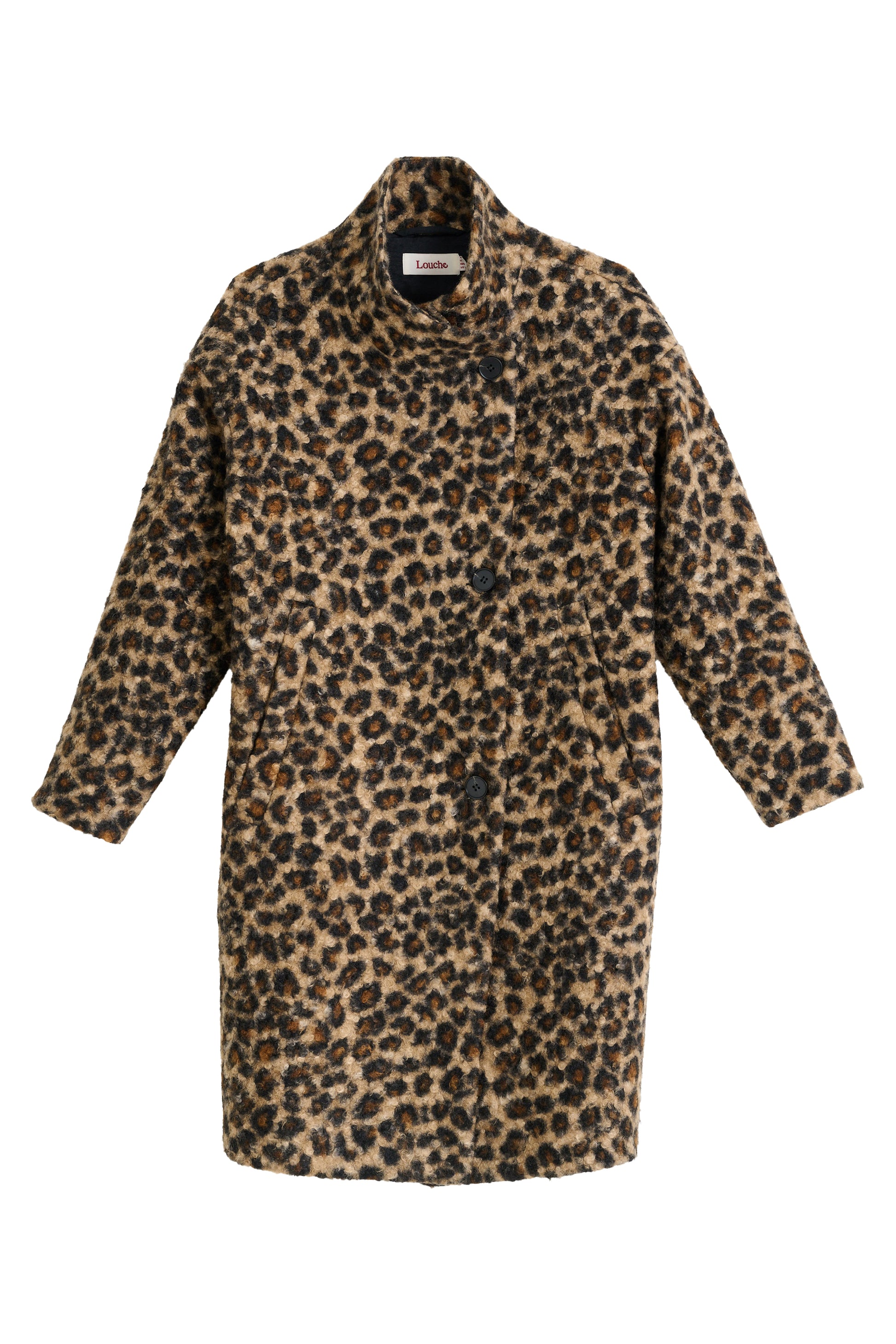Say hello to your winter wardrobe's boldest moment. The Donalda Animal Teddy Funnel Neck Coat combines a striking leopard print with luxurious boucle fabric, all wrapped in a generously proportioned cocoon silhouette. The structured funnel neck isn't just a design detail—it's your personal comfort zone, offering the perfect embrace on those biting cold days.