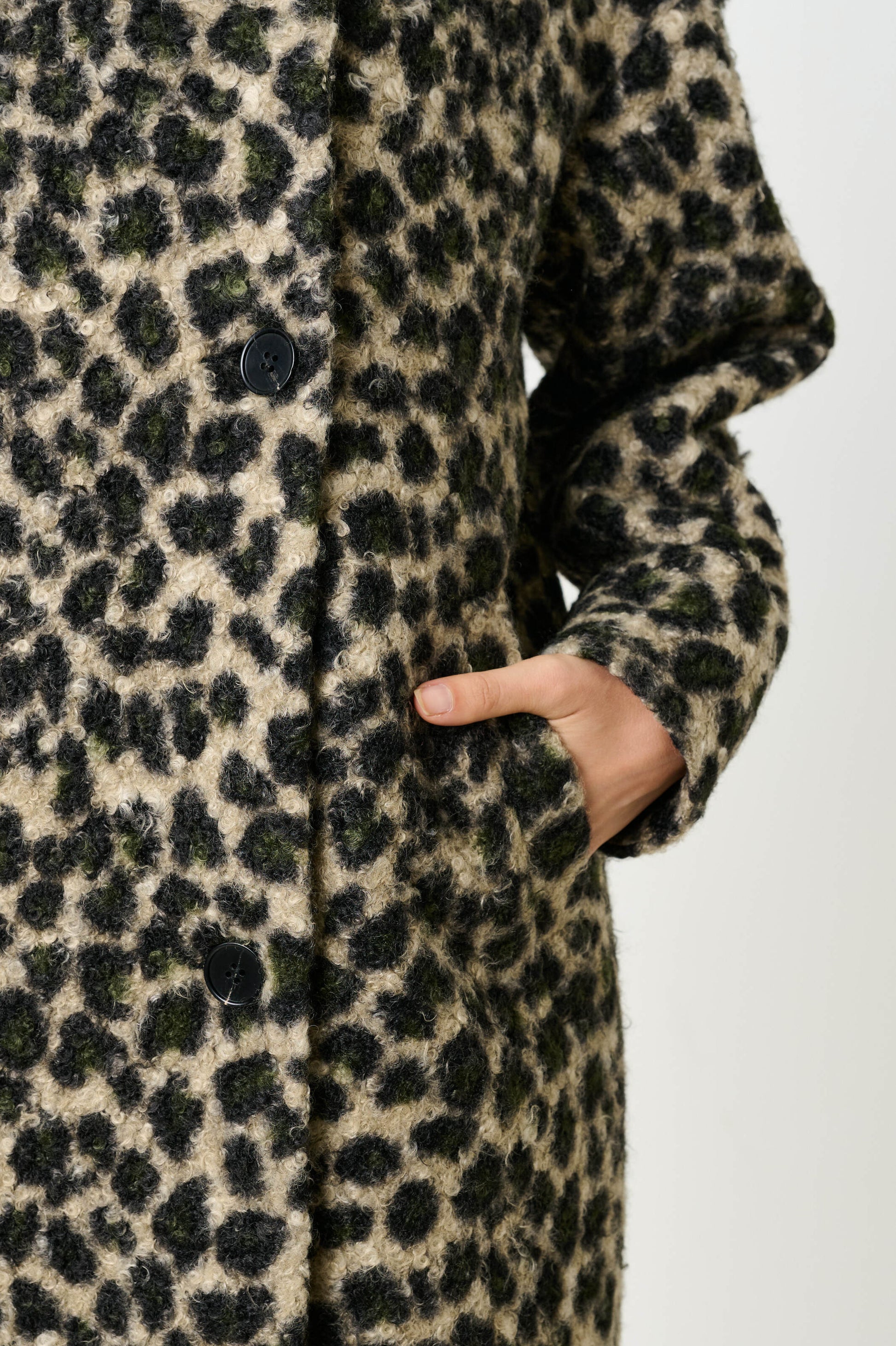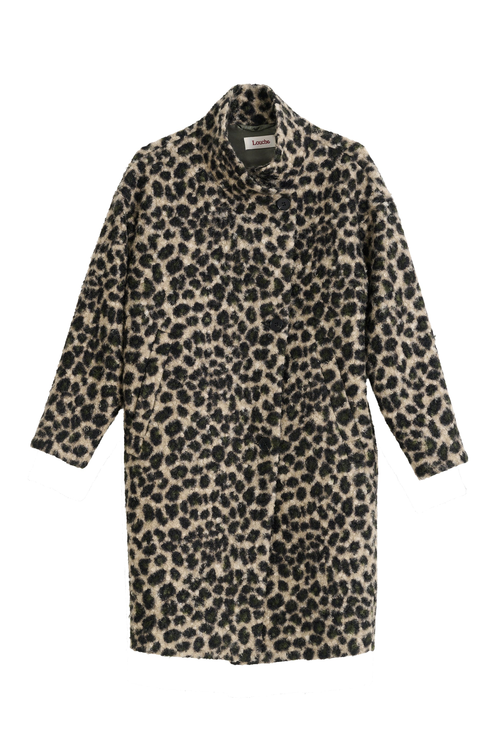 Say hello to your winter wardrobe's boldest moment. The Donalda Animal Teddy Funnel Neck Coat combines a striking leopard print with luxurious boucle fabric, all wrapped in a generously proportioned cocoon silhouette. The structured funnel neck isn't just a design detail—it's your personal comfort zone, offering the perfect embrace on those biting cold days.
