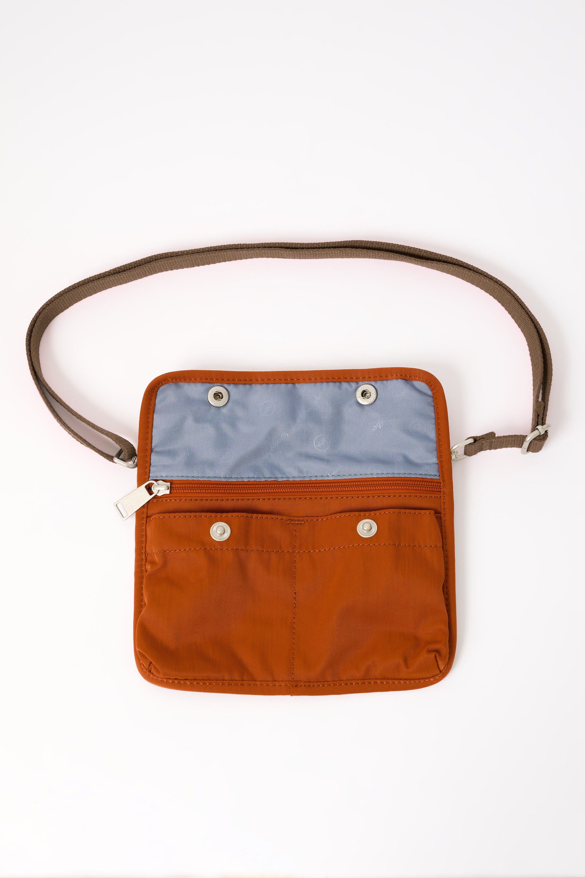 - Detachable wallet with a strap consisting of 3 pockets, one with a zip.