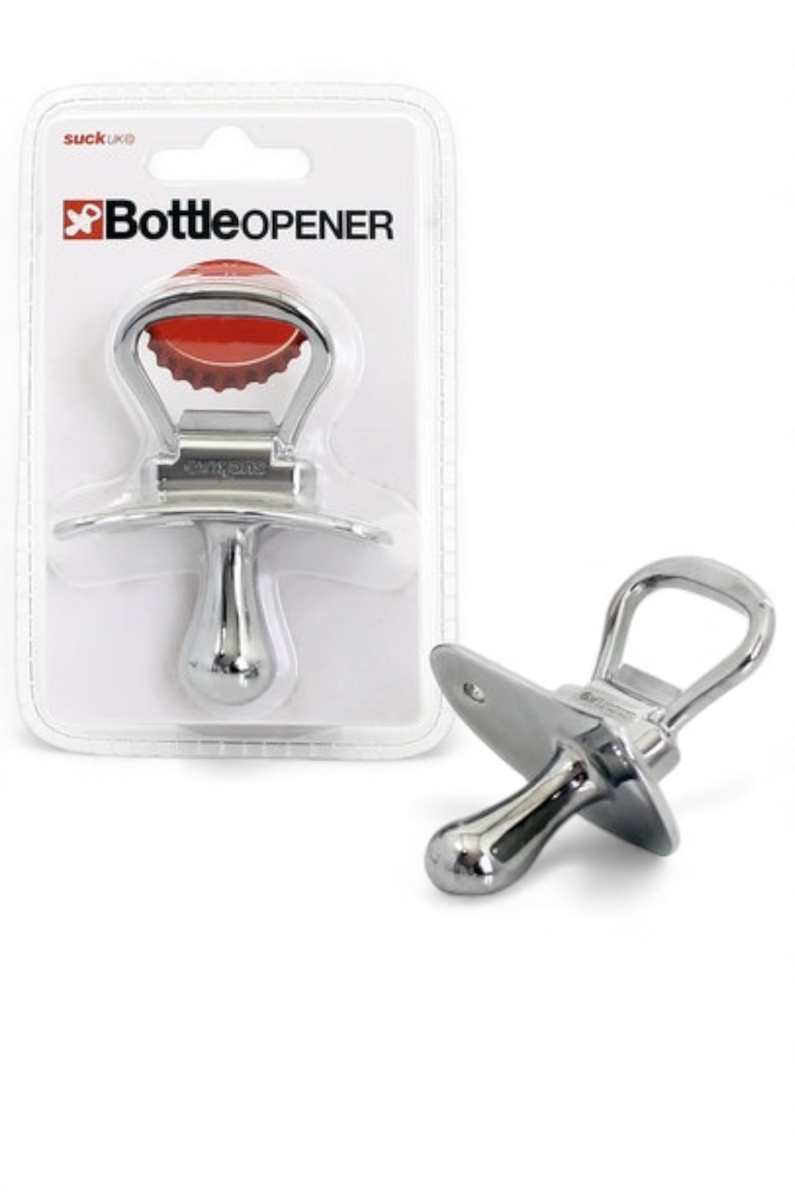 # Dummy Shaped Bottle Opener Crack open a cold one with a wink and a smile. This whimsical bottle opener channels nursery humour into practical bar-side fun, shaped like everyone's favourite pacifier. Hefty enough to tackle any stubborn cap, it's the perfect gag gift for mates who never quite grew up—or for anyone who loves a bit of cheeky charm with their drink.