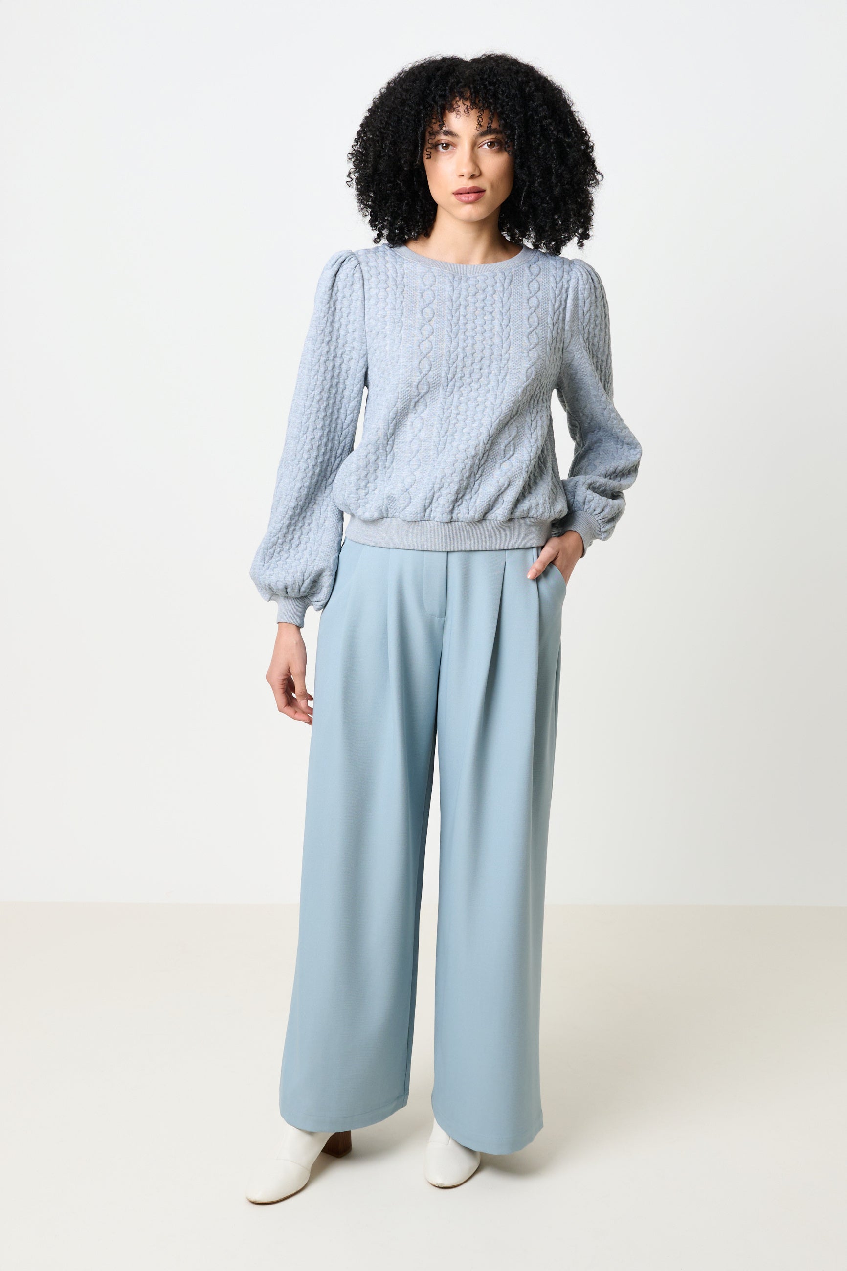 Ellie Cable Quilt Puff Sleeve Sweatshirt - Marl Grey