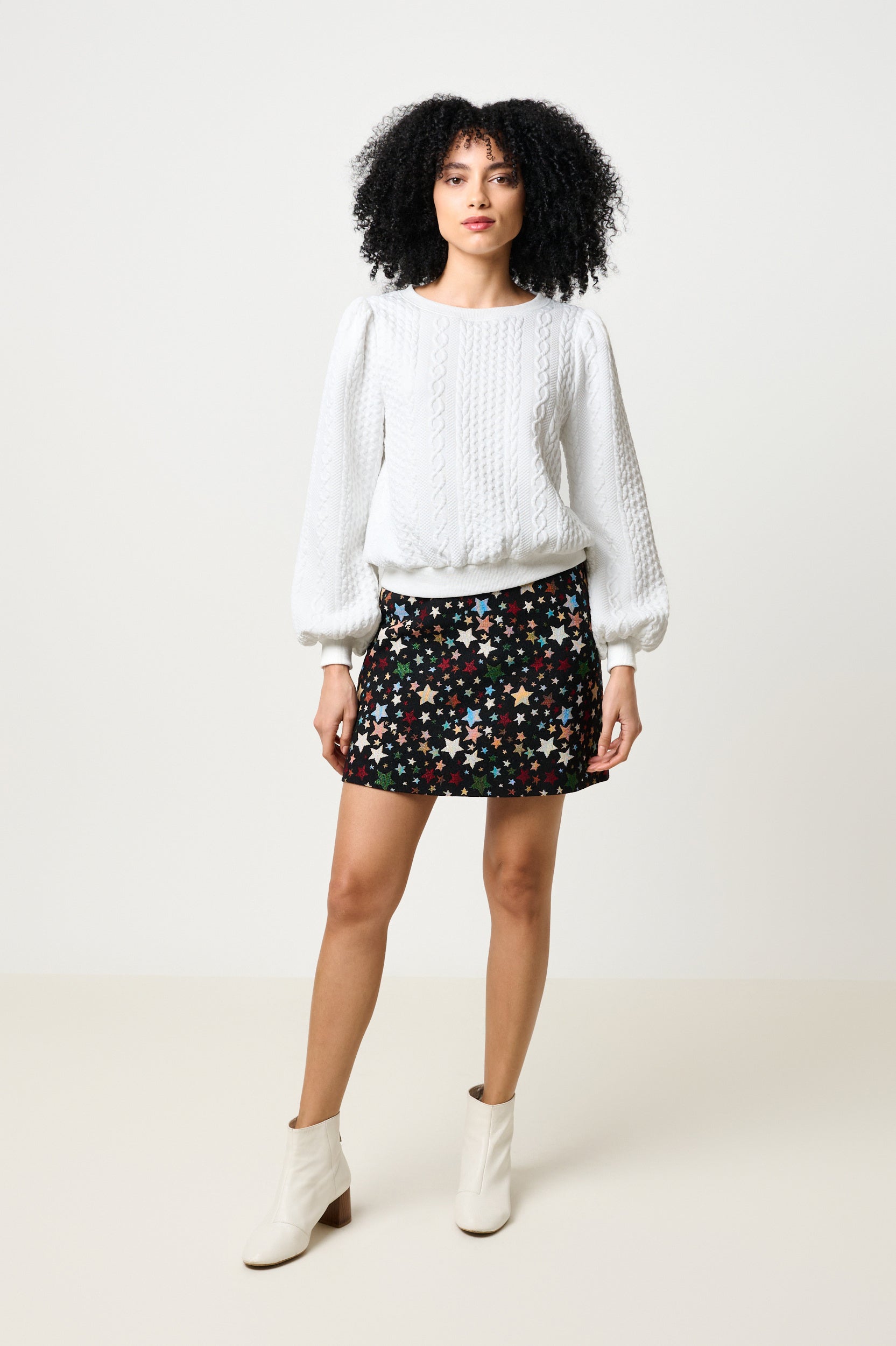 Ellie Cable Quilt Puff Sleeve Sweatshirt - White