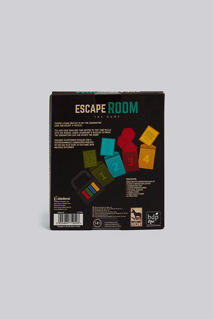 Choose a game master to set the combination lock and select 4 puzzles. You and your team are then invited to test your skills with the riddles, codes, symbology and puzzles to crack the combination lock and escape the room! Includes 16 different puzzles and a reprogrammable combination padlock, so you can play game after game with multiple outcomes!
