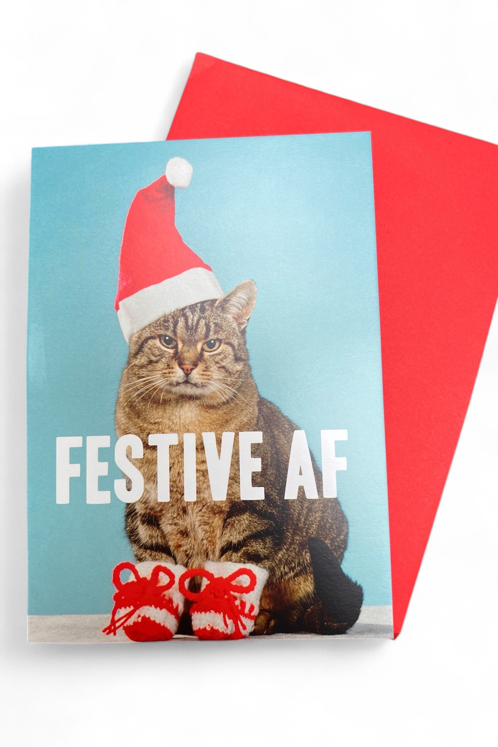 This amusingly card will hit a note with all cat lovers this Christmas! This card is made of sustainable card and designed in the UK. The card is blank inside with an bright red envelope included.