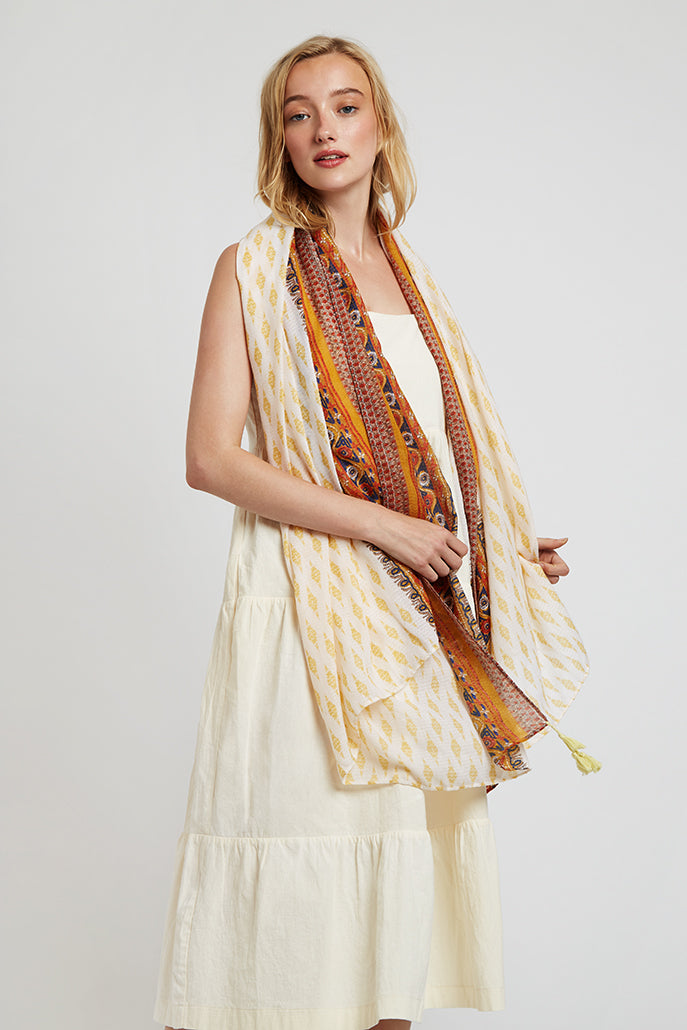 Enhance your summer wardrobe with the Hadlet printed border boho scarf. Enjoy the lightweight fabric perfect for summer, and never worry about burnt shoulders again! With its ethnic-inspired pattern, colourful border and handmade tassel trim all providing a dramatic finishing touch.