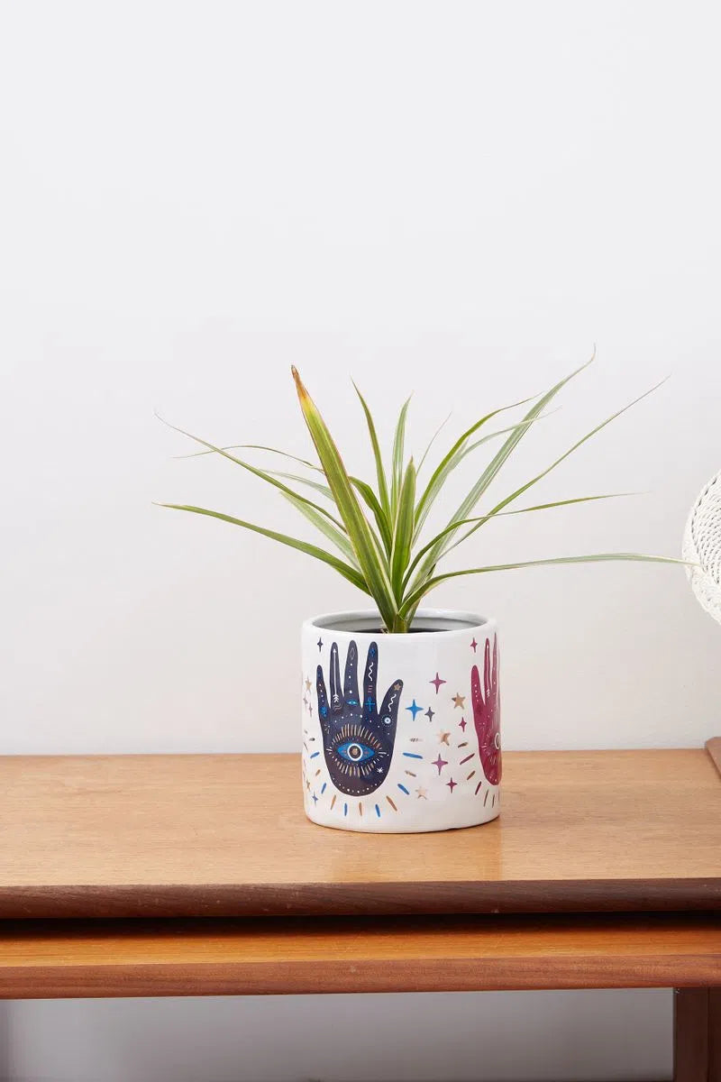 Bring a touch of culture and charm to your home décor with the Hand Design Planter. This hand-painted pot is inspired by henna hand paintings and is sure to make your space more vibrant. Add a timeless bohemian flair to your indoor garden and enjoy long-lasting beauty.