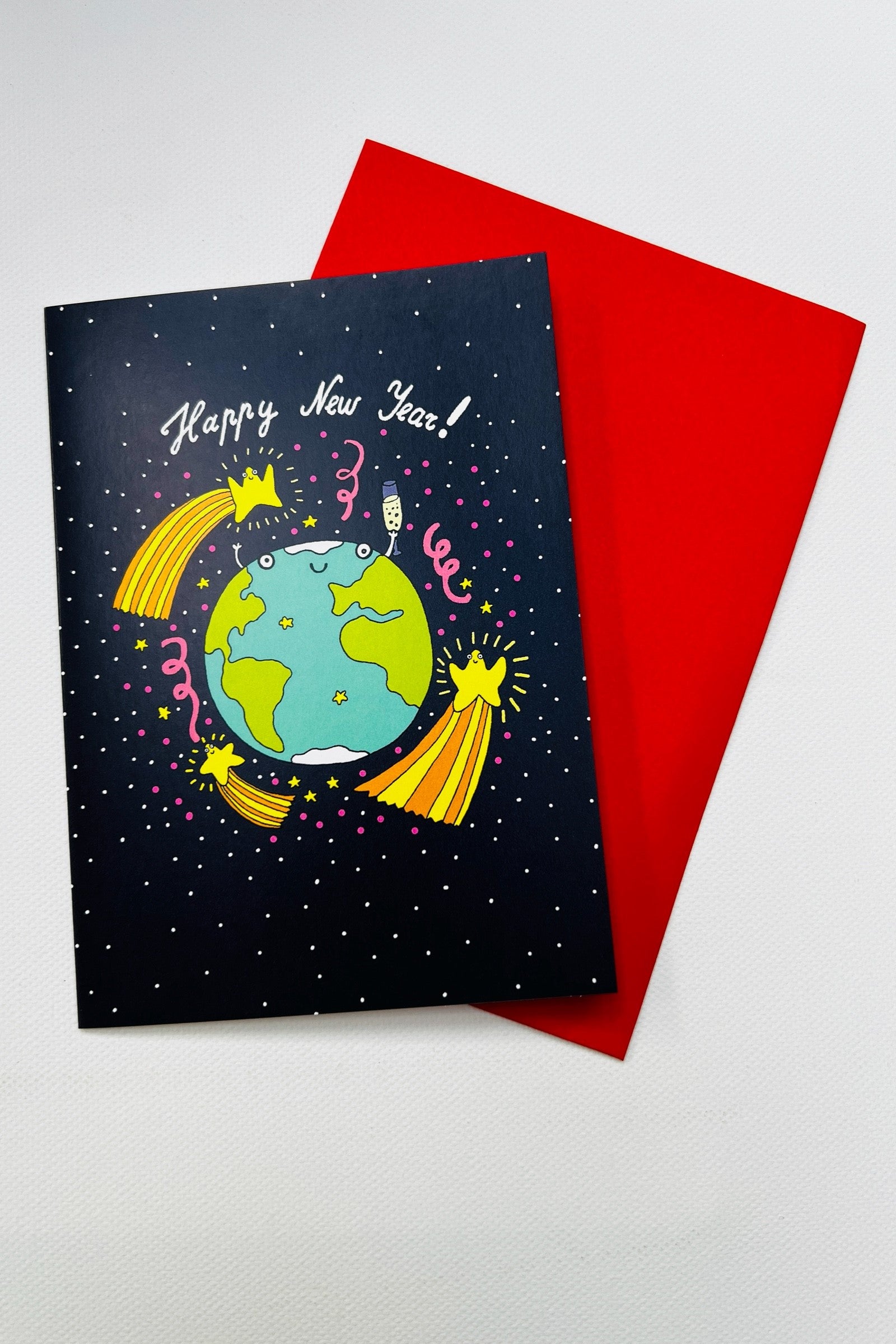 Wish friends and relatives a Happy New Year. Perhaps we can spread a little happiness Worldwide. Made in the UK from FSC certified sustainable materials, the card is blank inside with a red envelope included. Send your well wishes with this fun greeting card!