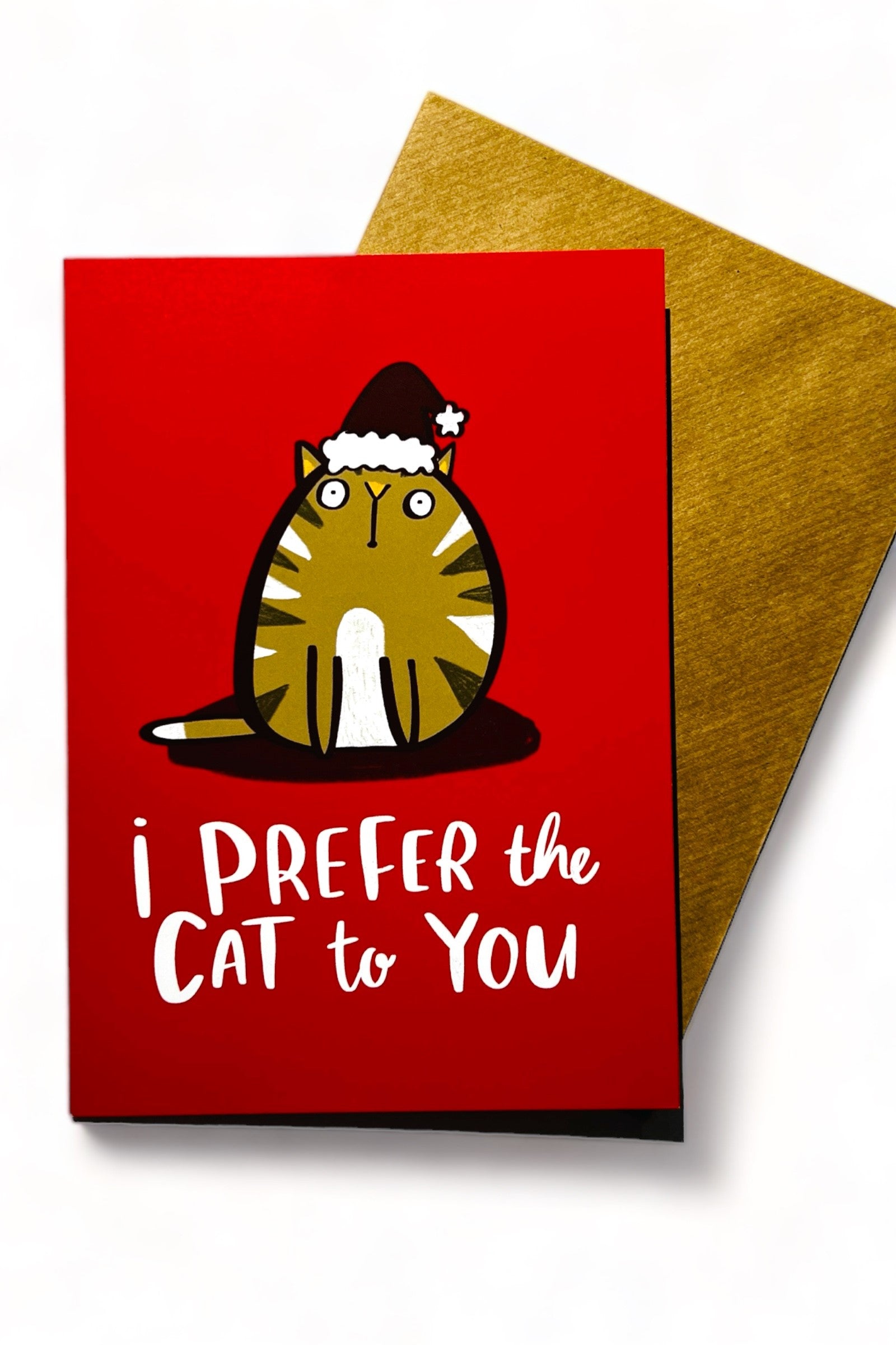 An amusingly illustrated card sure to bring a smile this Christmas. Cat owners will aprove! This card is made and designed in the UK. The card is blank inside with an Kraft envelope included.