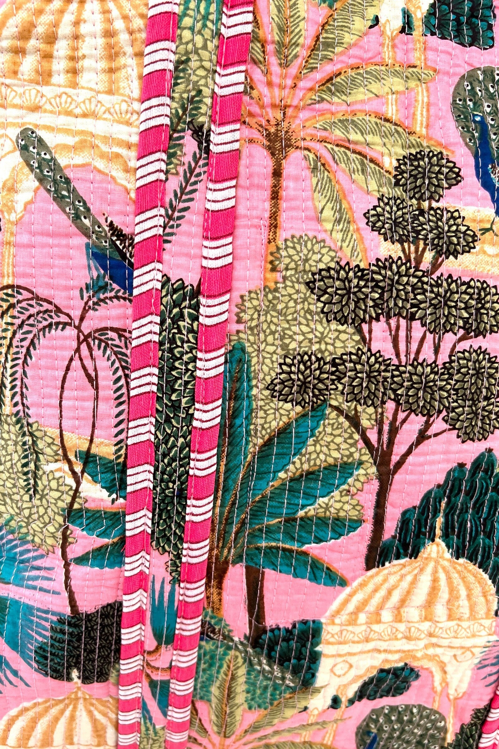 Brighten your day with the Indian Palace Print Quilted Large Tote Bag! This tote-ally amazing bag features a vibrant, eye-catching print and a cozy quilted texture. Inside, a striped lining and handy phone pocket keep your essentials organized. Spacious enough for towels, gym gear, and all your adventures, it’s the perfect playful companion for wherever life takes you!