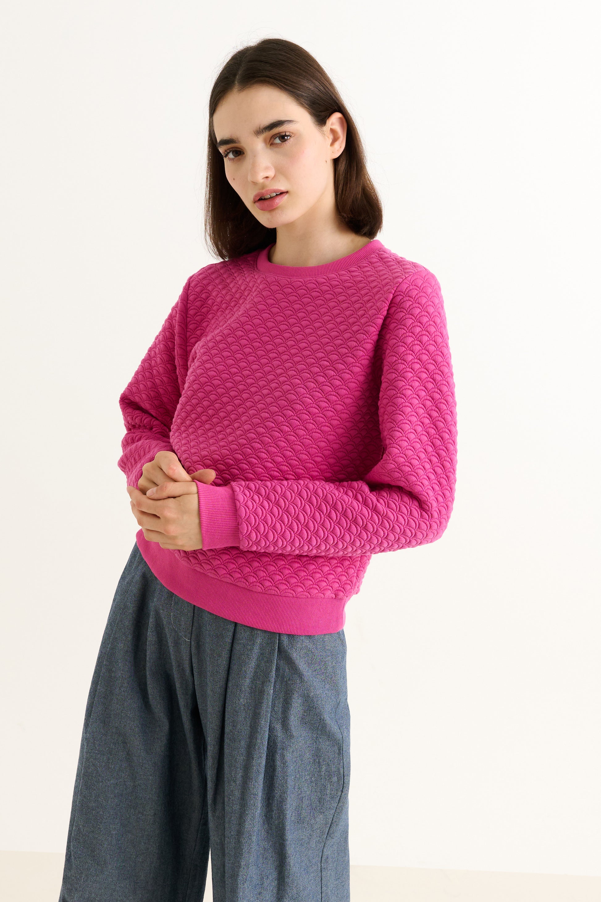 The best selling Jan Sweatshirt, in a brand new scallop quilt design in a bright pink. Crafted from a comfy blend of 95% polyester and 5% elastane, this sweatshirt offers both stretch and softness perfect for chilly days or relaxing nights in.
