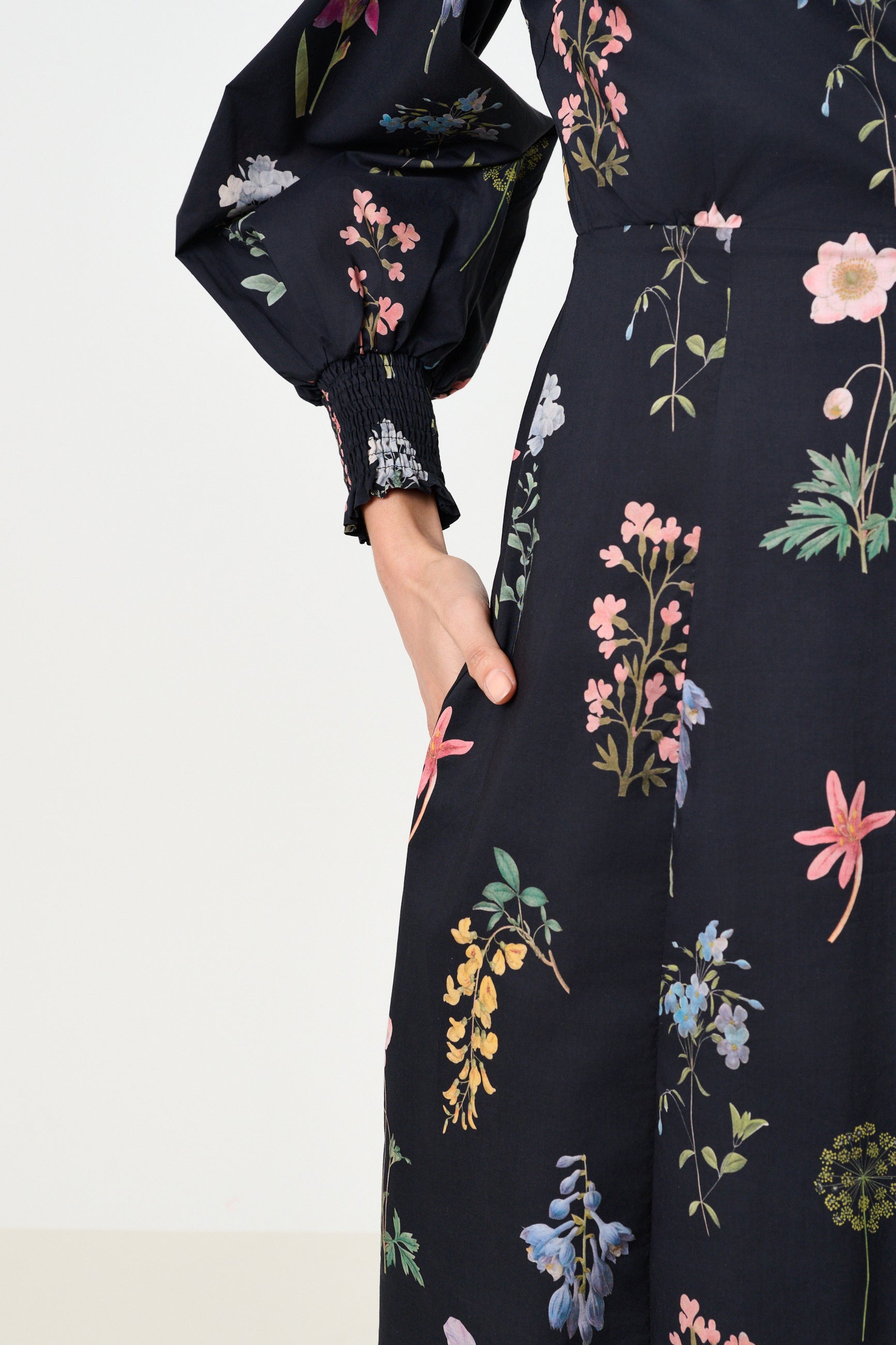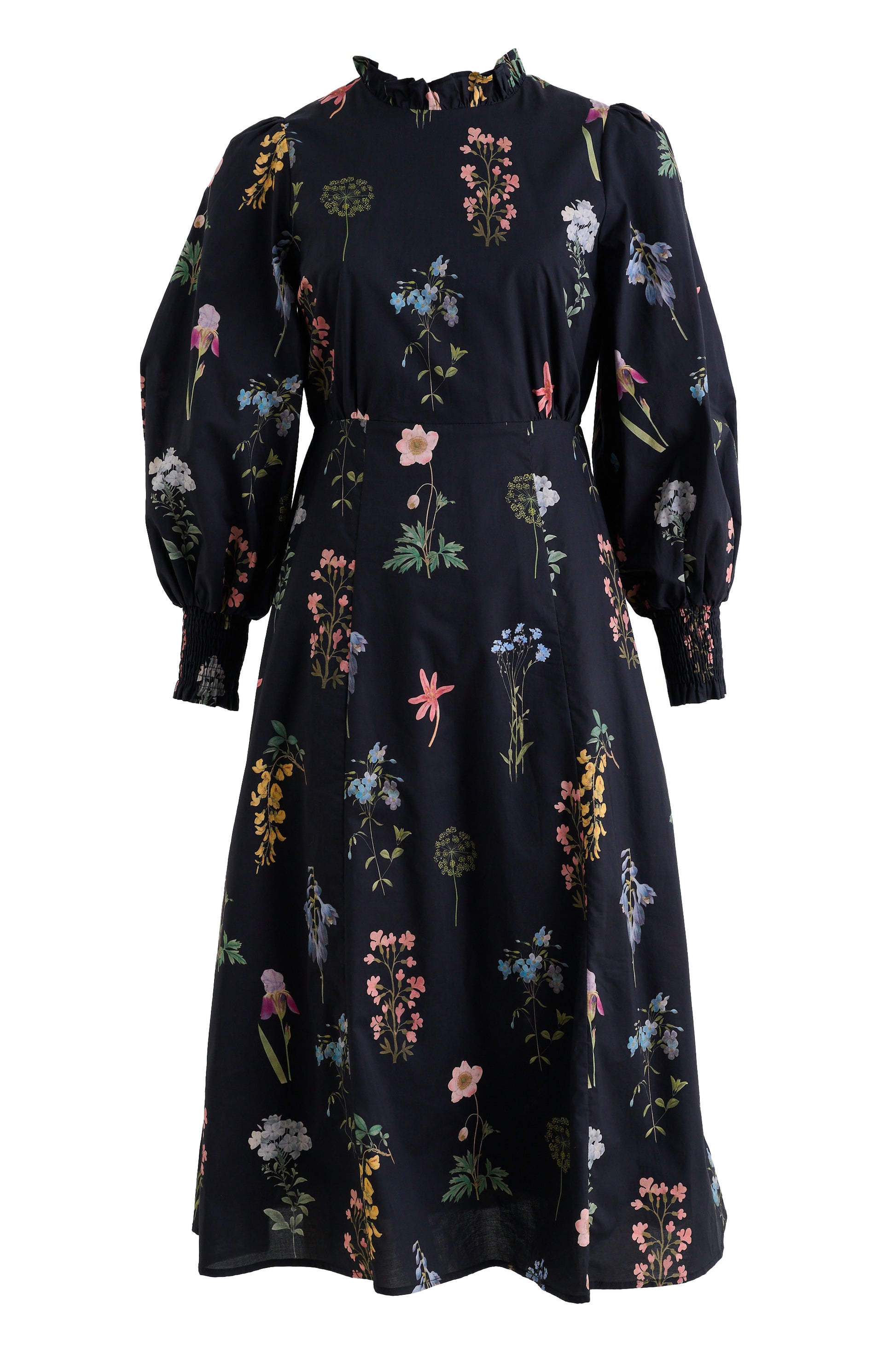 Meet your new desk-to-dinner essential. The Jessie pairs a flattering midi silhouette with a deep navy based botanical flower press print for understated elegance. While the versatile cut means you'll reach for it again and again—whether you're heading to the office or out for the evening. One dress, endless possibilities.