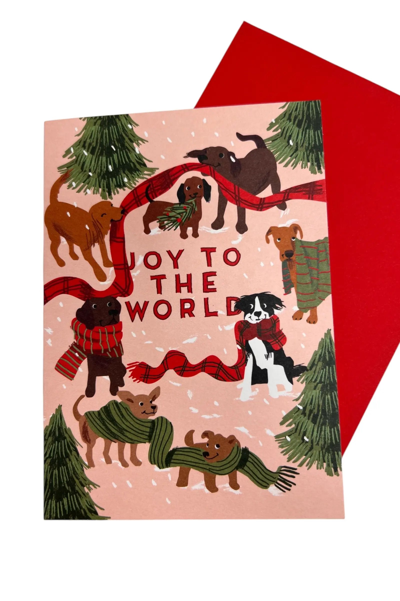 This delightfully illustrated doggy Christmas card is sure to bring joy to any dog owner. Designed and made from sustainable card and printed using vegetable inks in the UK. The card's blank interior allows you to write your own message. Includes a bright red envelope to make it extra eye-catching.