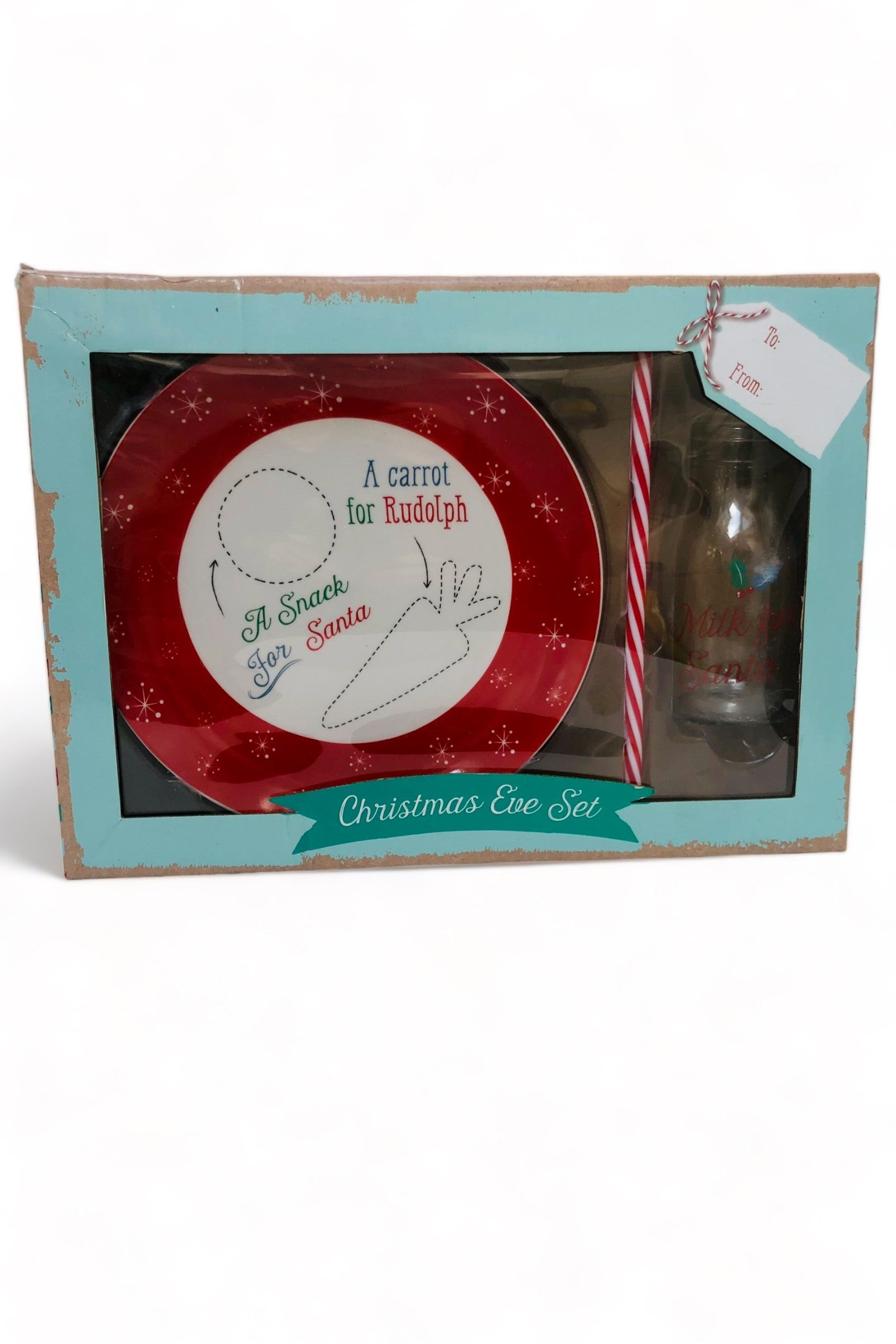 Make sure the little ones are ready for a Jolly St. Nick and his eight tiny reindeer with this festive Kids Christmas Eve Set! The plate has just enough room for a carrot and a snack for Santa, while the bottle and straw provide for a much-deserved drink to go!