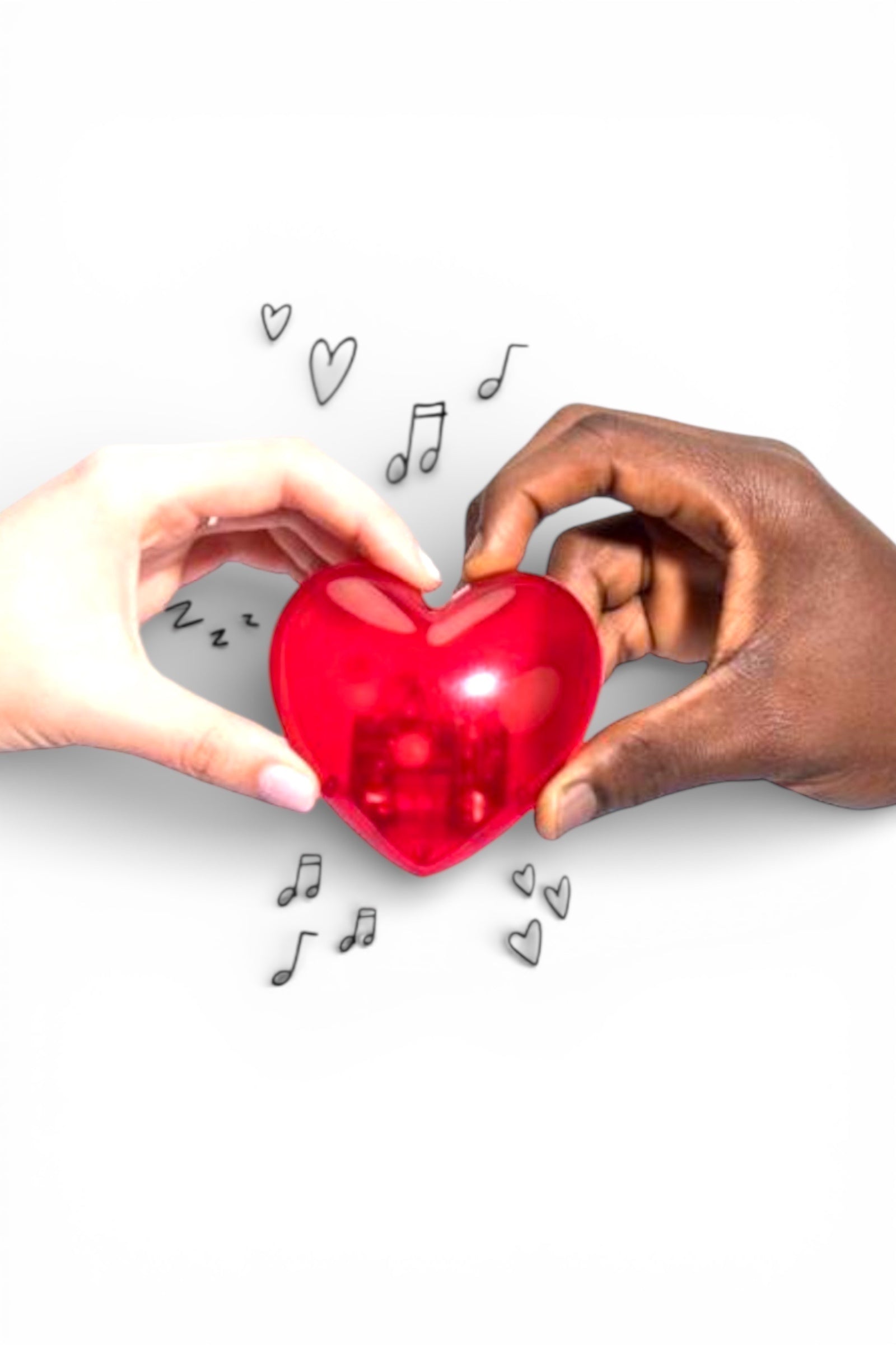 How true is your love ? Hold the heart with your partner and kiss... you'll find the answer, the sound will say it all! Playful fun.