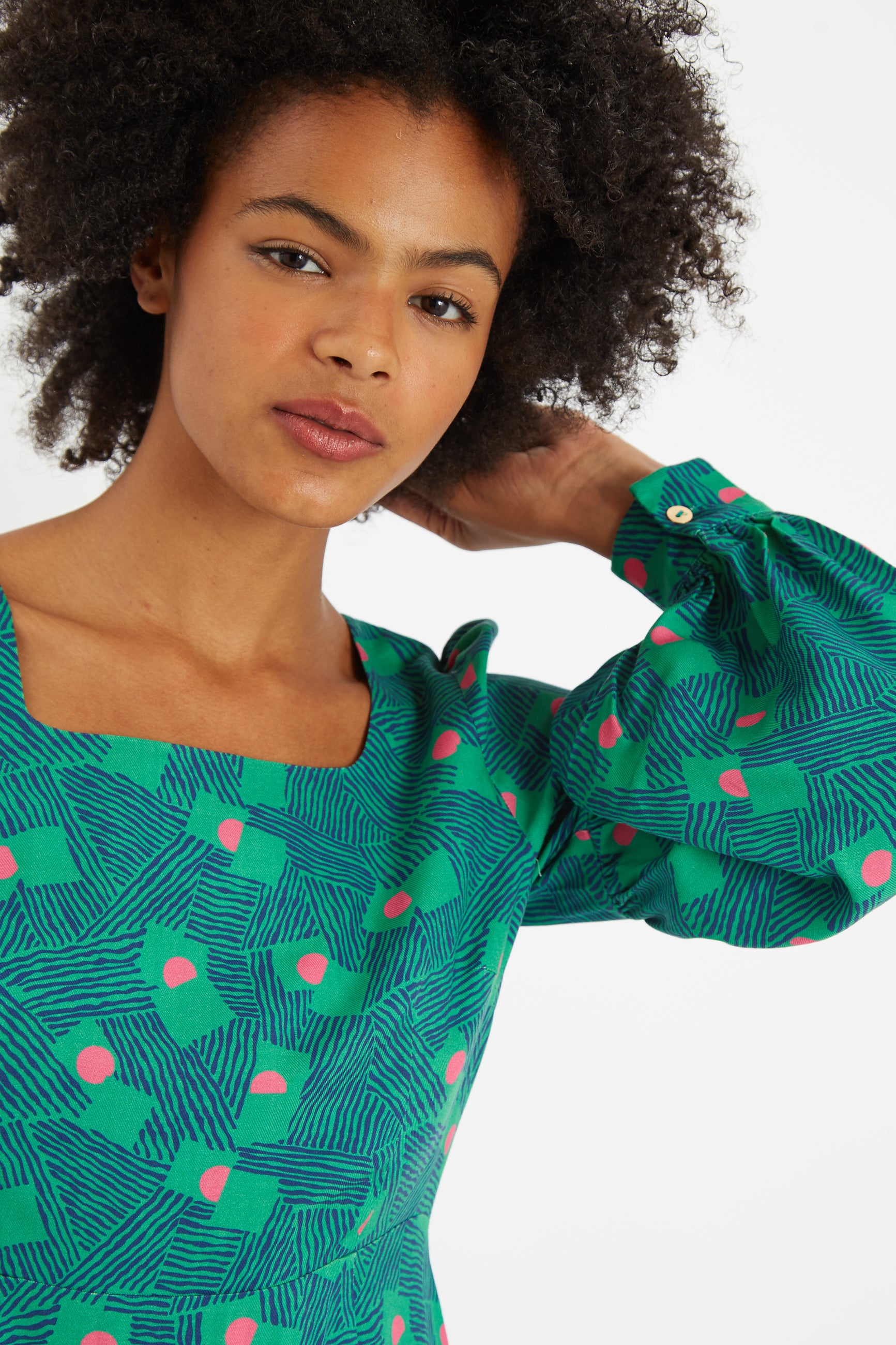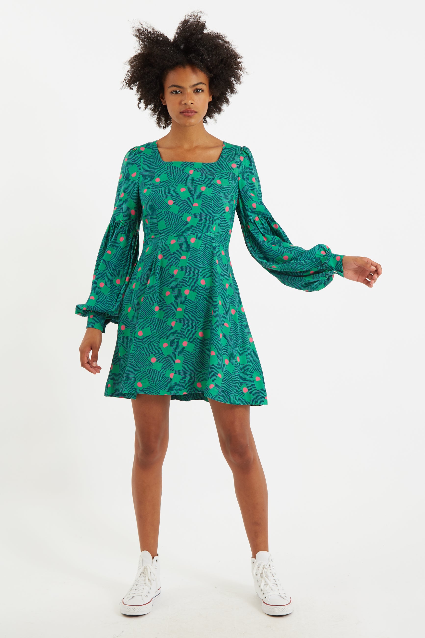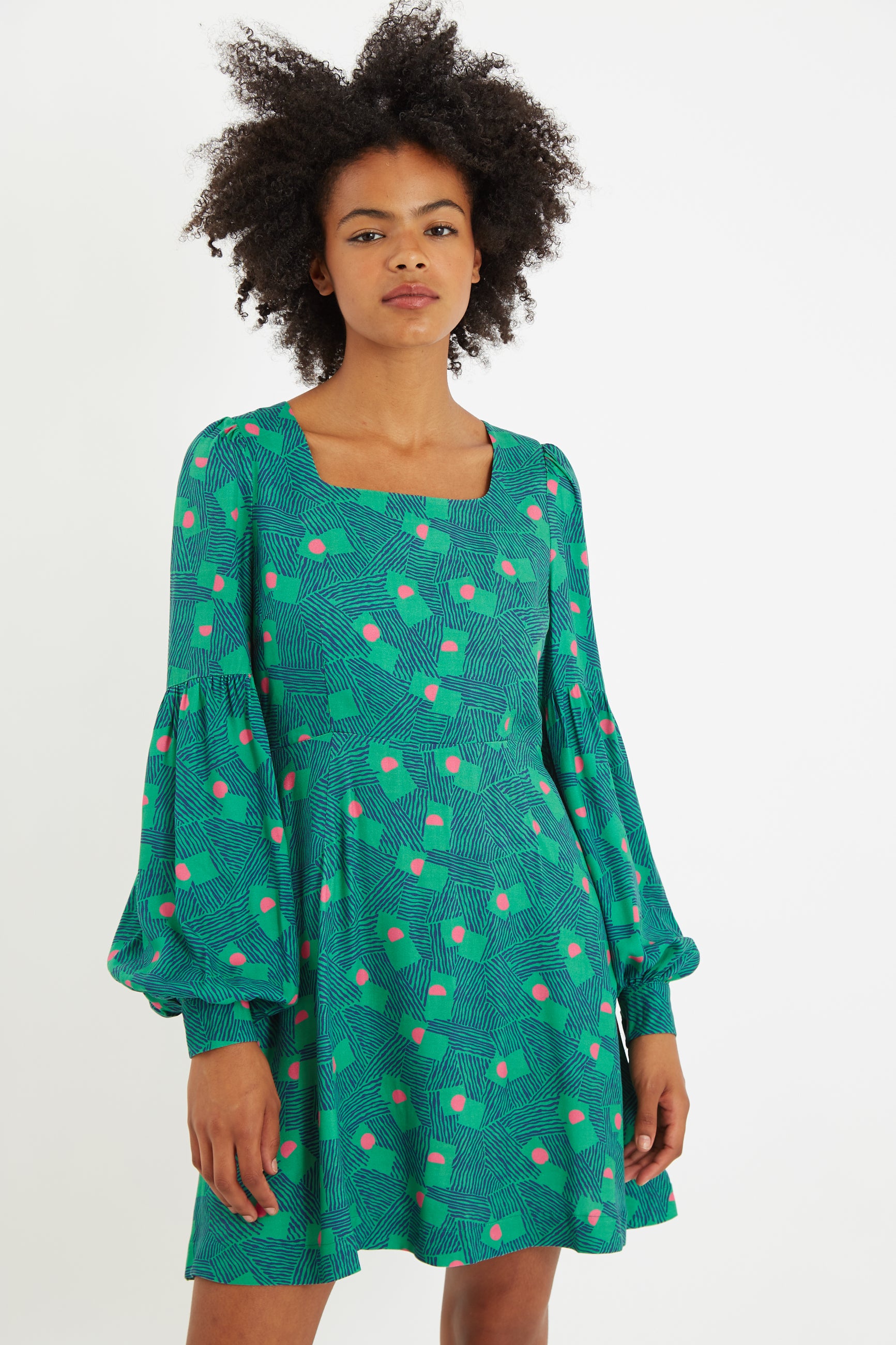 A transitional style statement sleeved mini dress that is just so versatile, you'll be wearing this for months on end. Crafted in an unique recoloured archive print and featuring a flattering square neckline, an easy hip skimming skirt and deep side seam pockets. What's not to love?