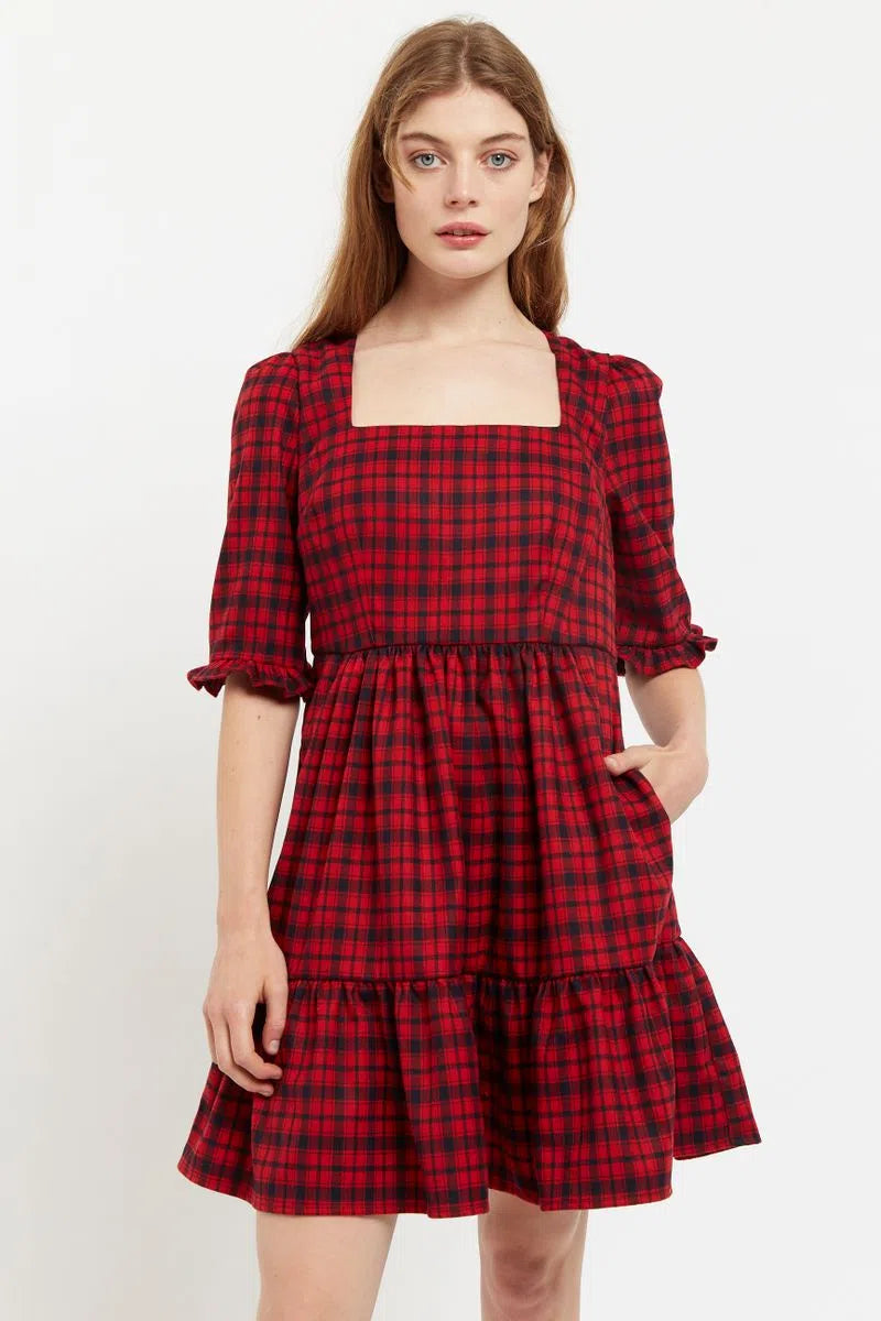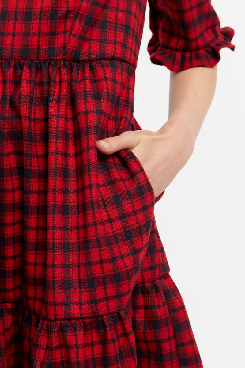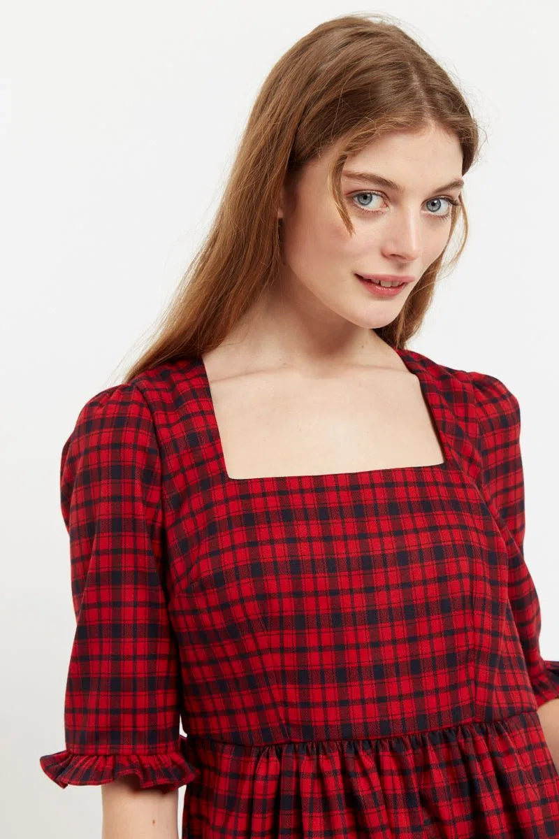 Louche Sassa Winter Gingham Tiered Mini Dress in Red and Black