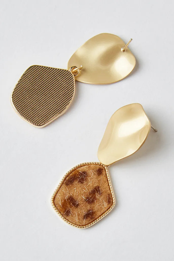 Add a bold touch to your outfit with our Malachi matte gold and leopard drop earrings. These statement earrings feature a unique combination of matte gold and leopard print, making them a perfect accessory for those looking to make a fashion statement.