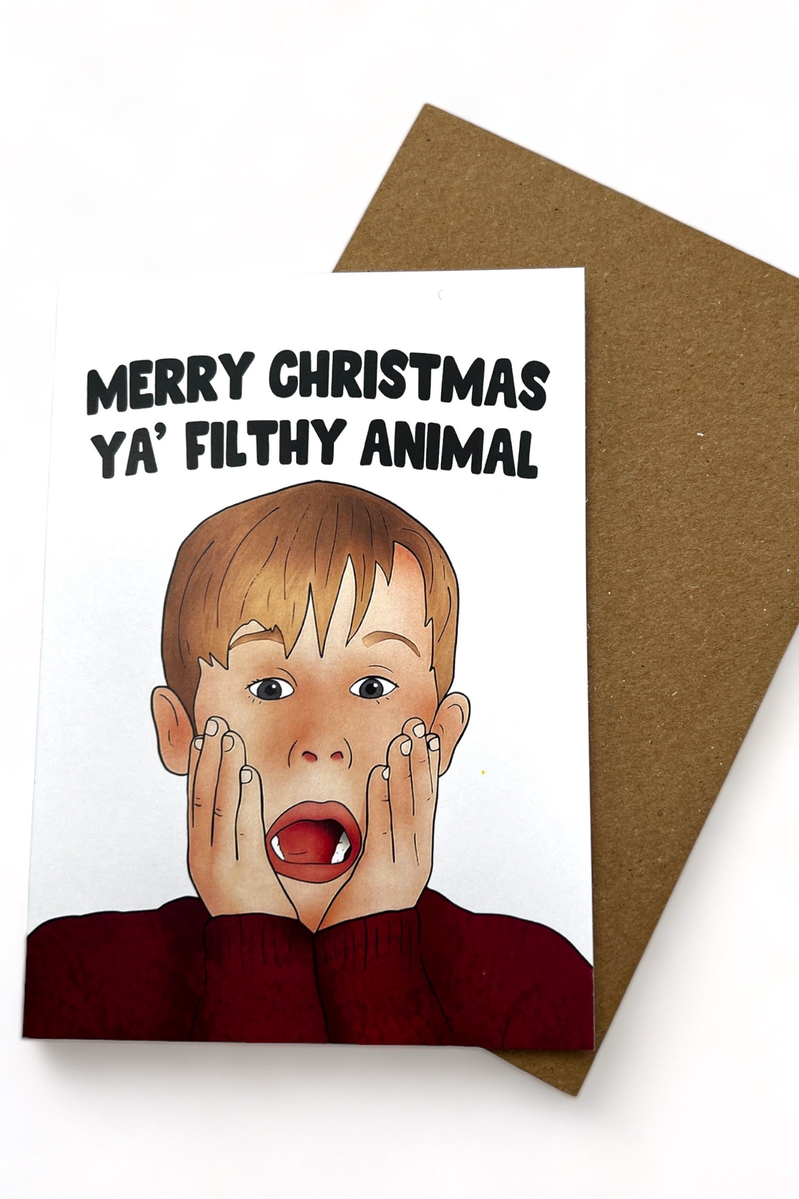 An amusingly illustrated card sure to bring a smile this Christmas! This card is made and designed in the UK. The card is blank inside with a Kraft envelope included.