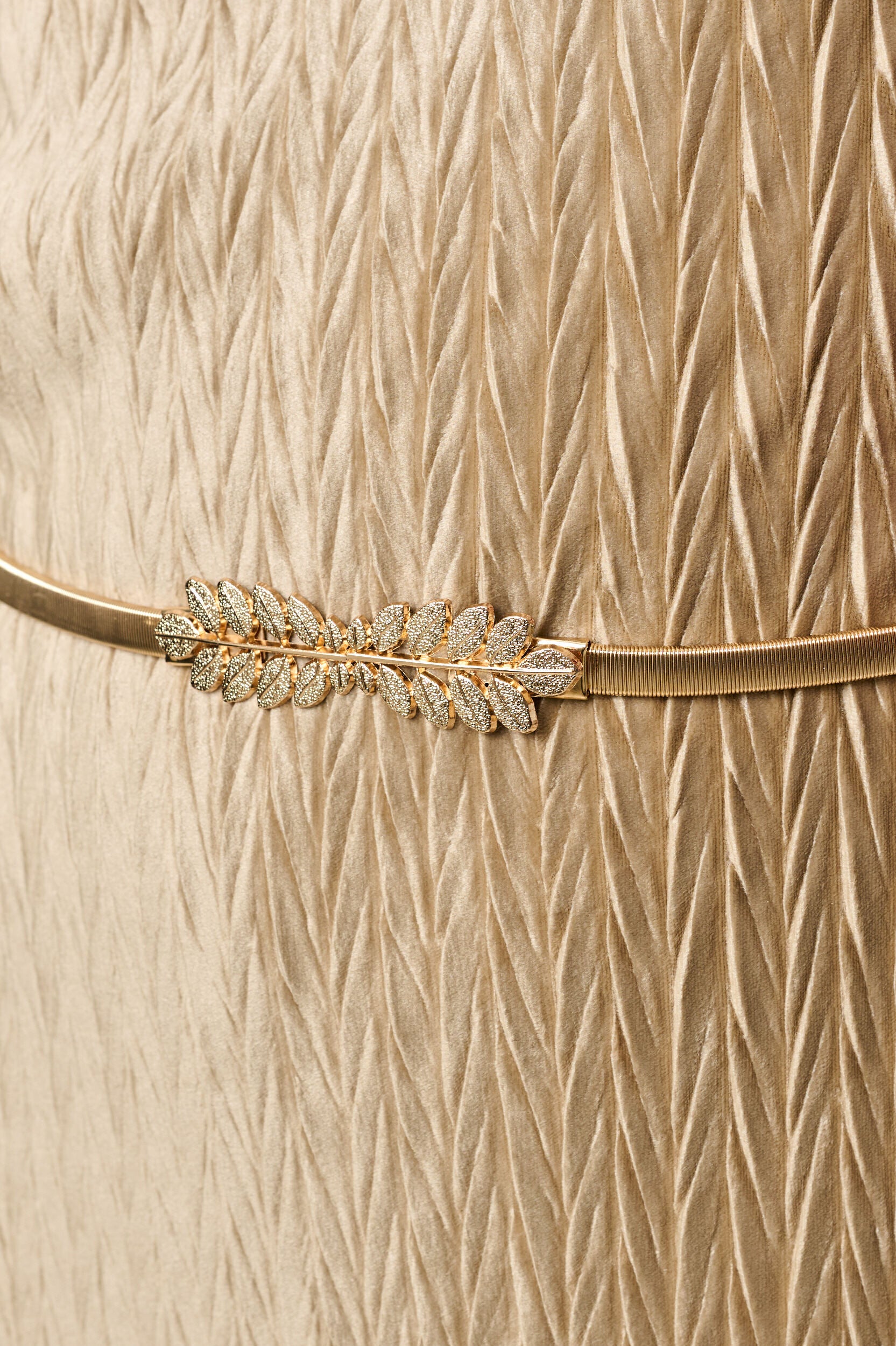 - Elasticated gold leaf belt.