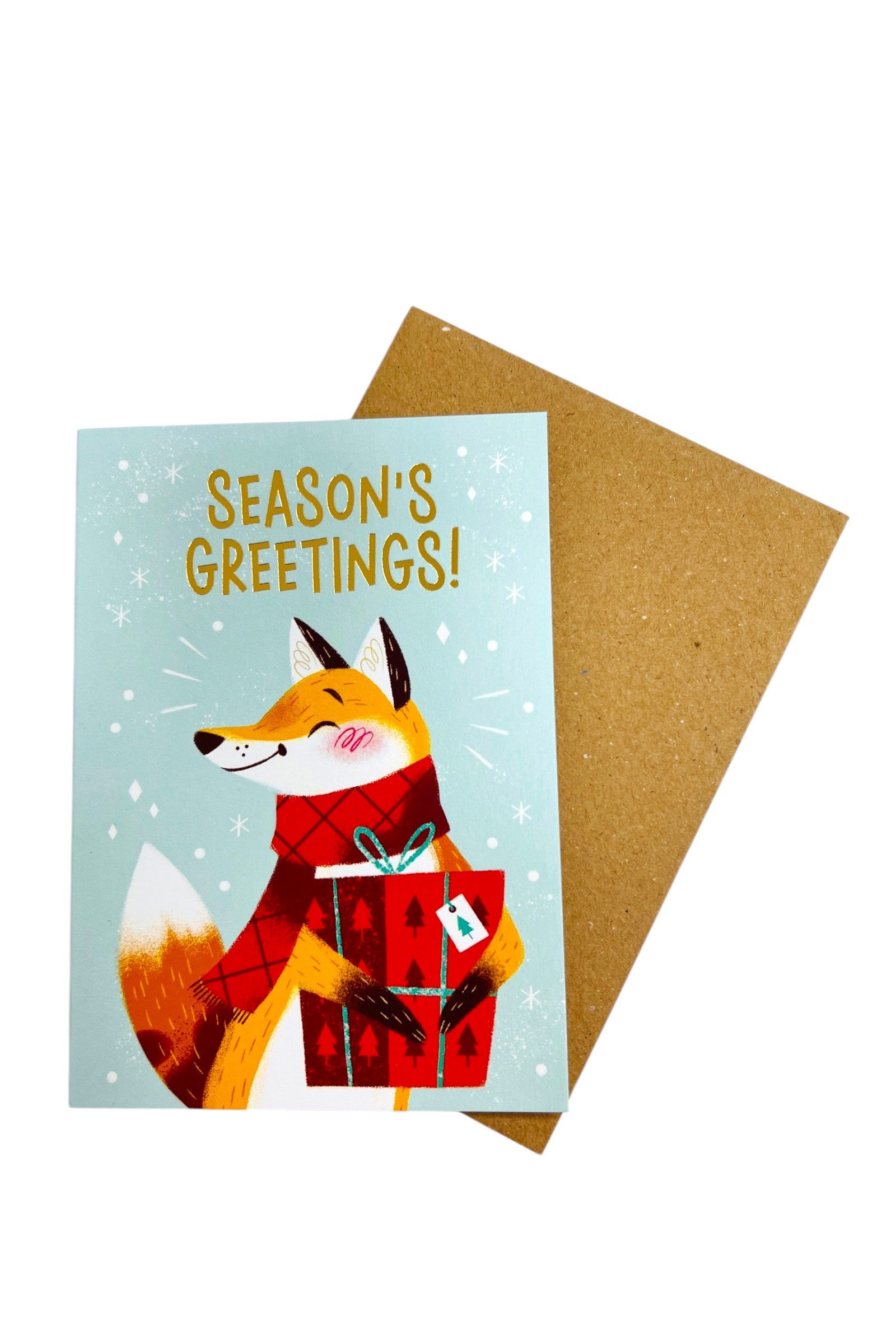 Spread some foxy festive cheer with this playful card which was designed, printed, embossed and foiled on sustainable card in the UK
