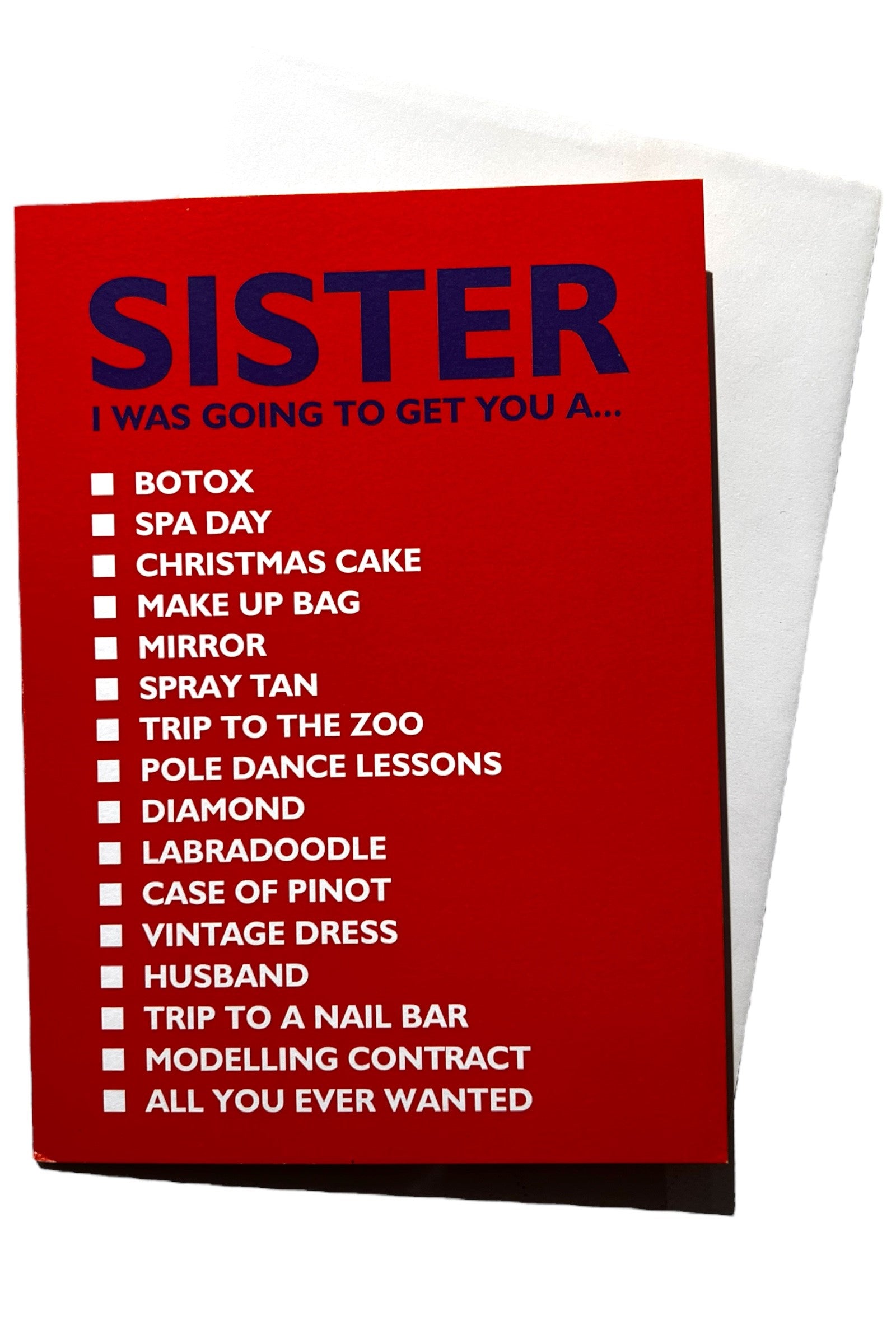 What do you buy your sister for Christmas? A card of course but she might be happy with some of the other suggestions either way it will bring a smile. Printed with a Merry Christmas message inside it comes with a white envelope.