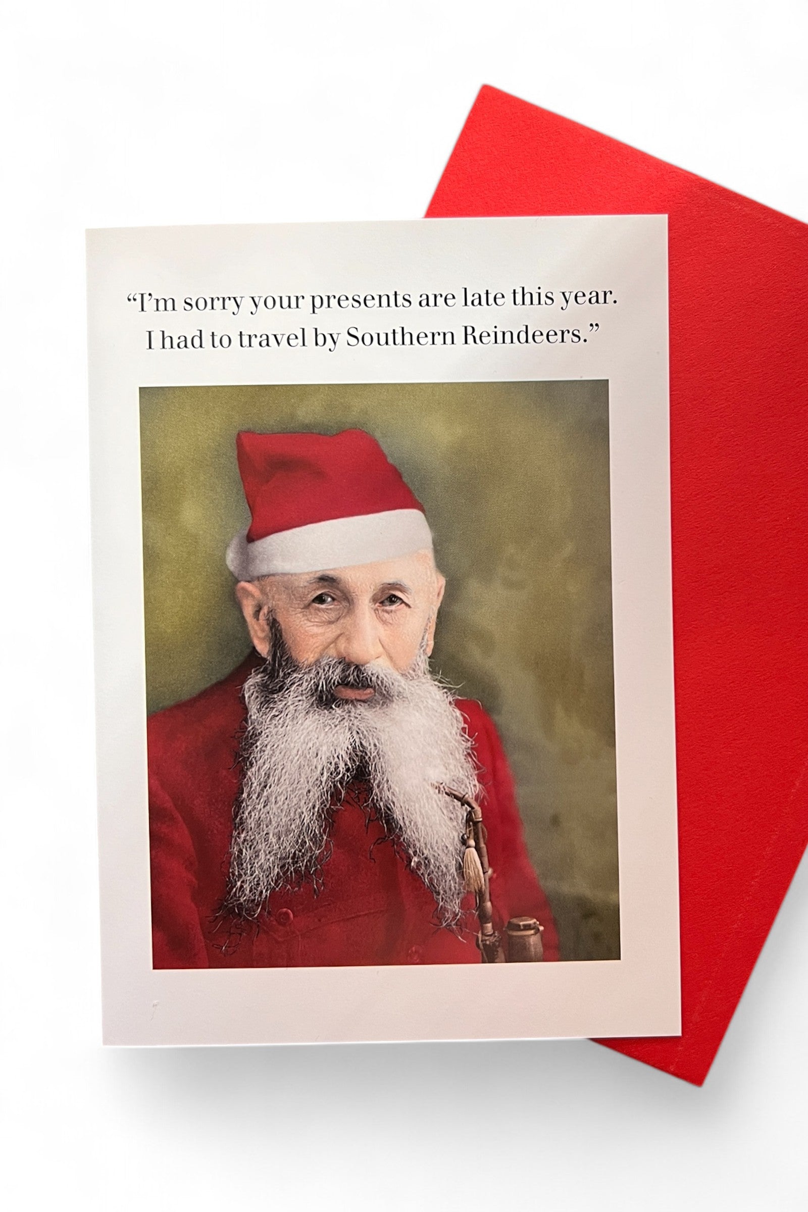 This amusingly card will hit a note with almost everyone living in London this Christmas! This card is made of sustainable card and designed in the UK. The card is blank inside with an bright red envelope included.