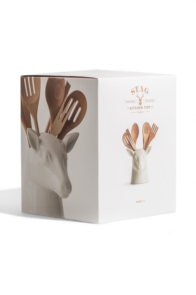 Meet your kitchen's new best friend—a whimsical stag whose antlers are made for holding wooden spoons. This two-compartment deer head storage solution banishes utensil clutter from your drawers and puts style front and centre on your countertop. Keep your cooking essentials close at hand without sacrificing an inch of aesthetic appeal. Feeling festive? Transform it into a showstopping Christmas centrepiece by adding spruce branches and berries for a woodland-inspired table that'll have guests talking all season long.