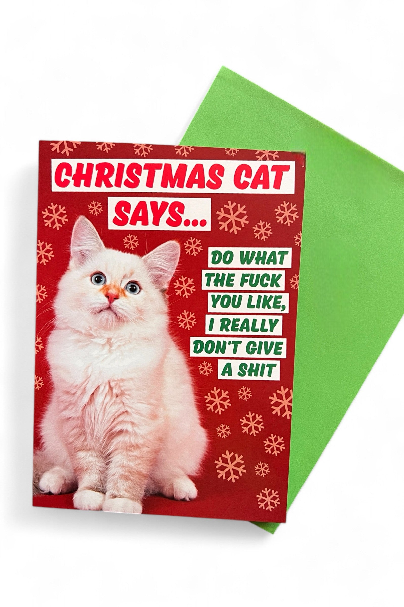 This amusingly card will hit a note with almost all cat owners this Christmas! This card is made and designed in the UK. The card is blank inside with an bright green envelope included.