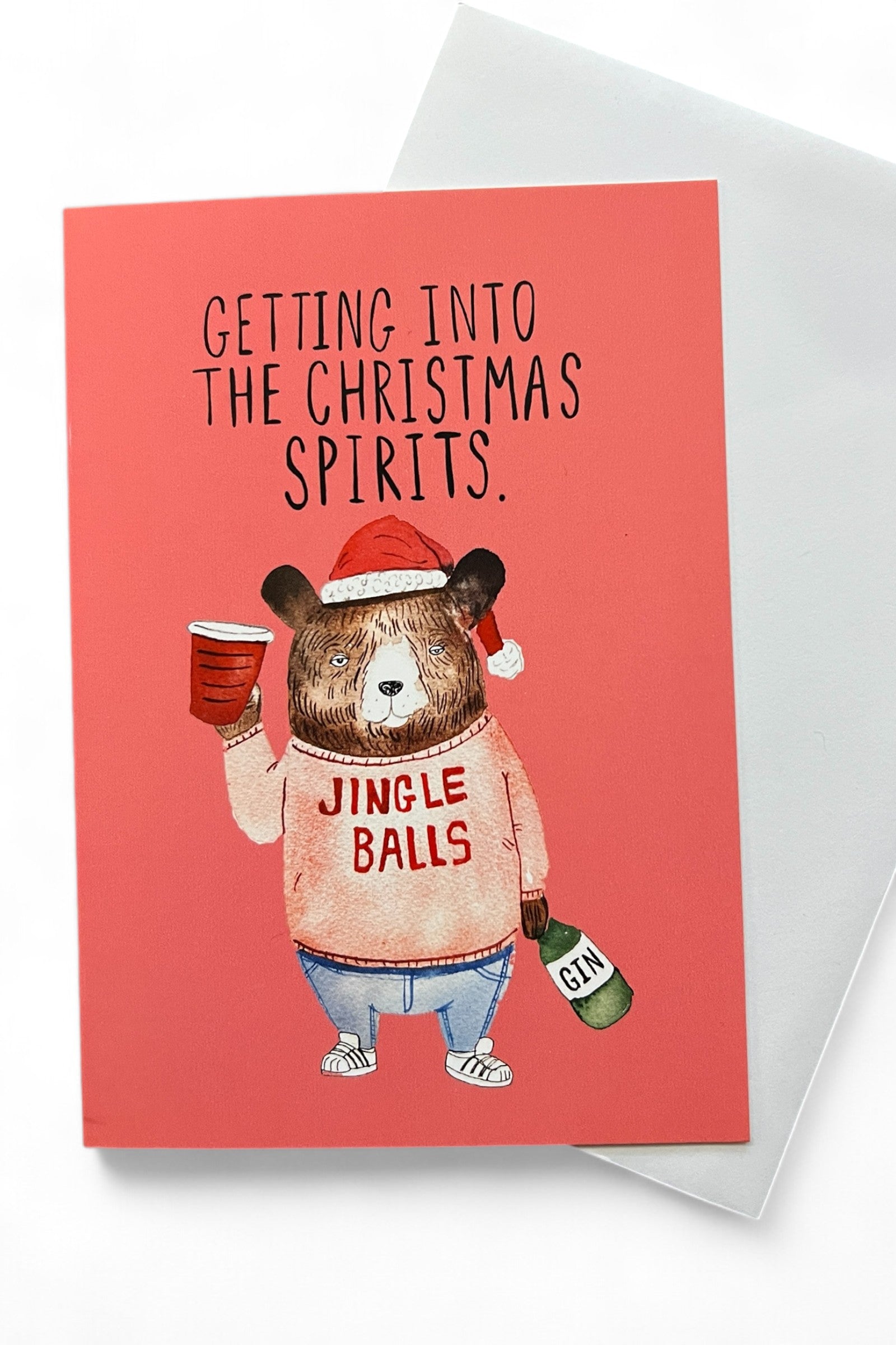 Spread the Christmas spirit with this amusingly illustrated card. Printed and designed in the UK. The card is blank inside with a white envelope included.