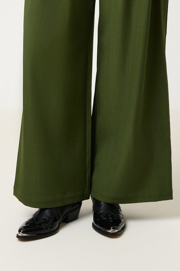 Tyler Pleat Front Wide Leg Trouser - Moss Green