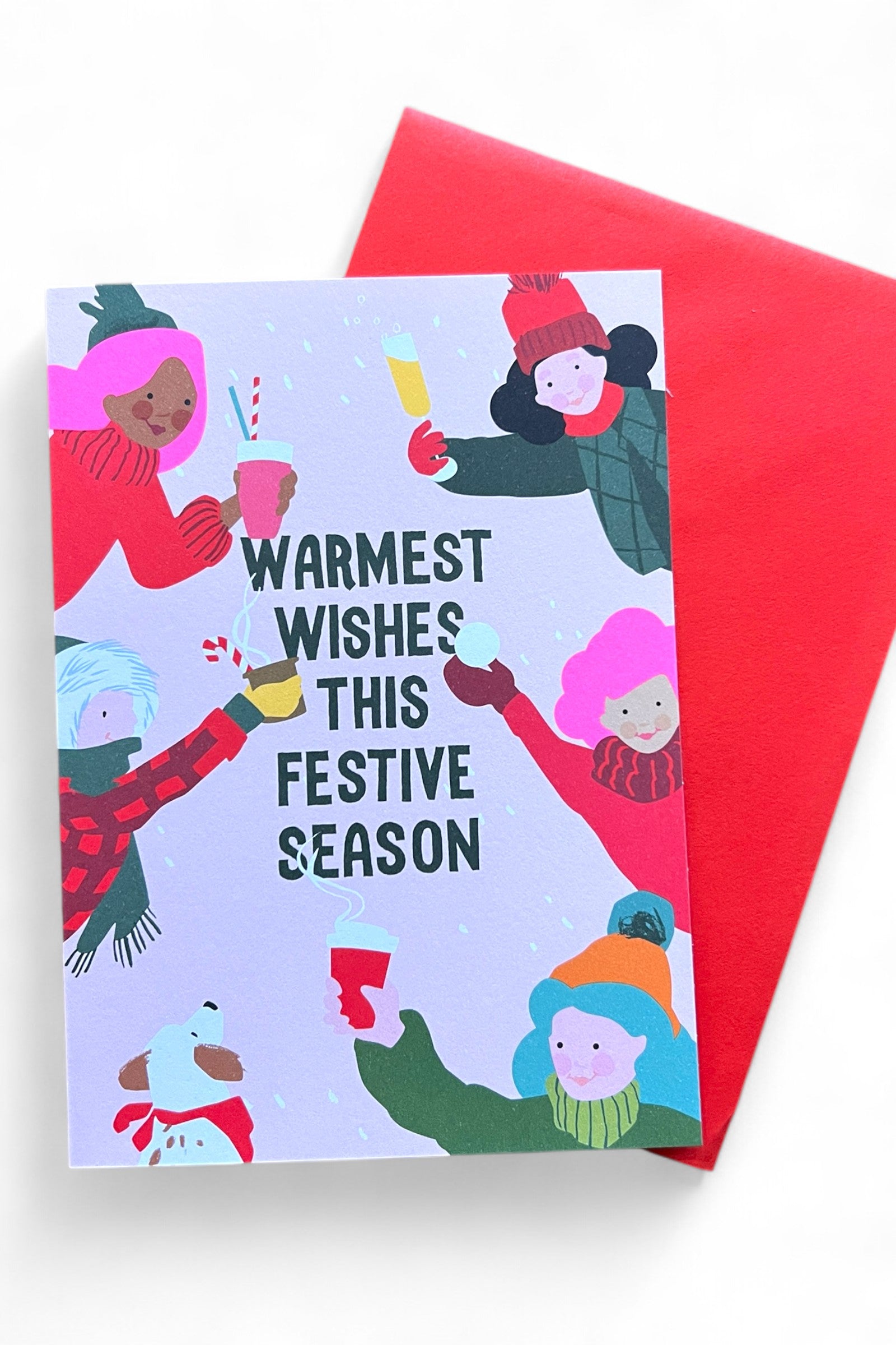 This bright beautifully illustrated Christmas card is designed and made in the UK. The card's blank interior allows you to write your own message. Includes a bright red envelope to make it extra eye-catching.